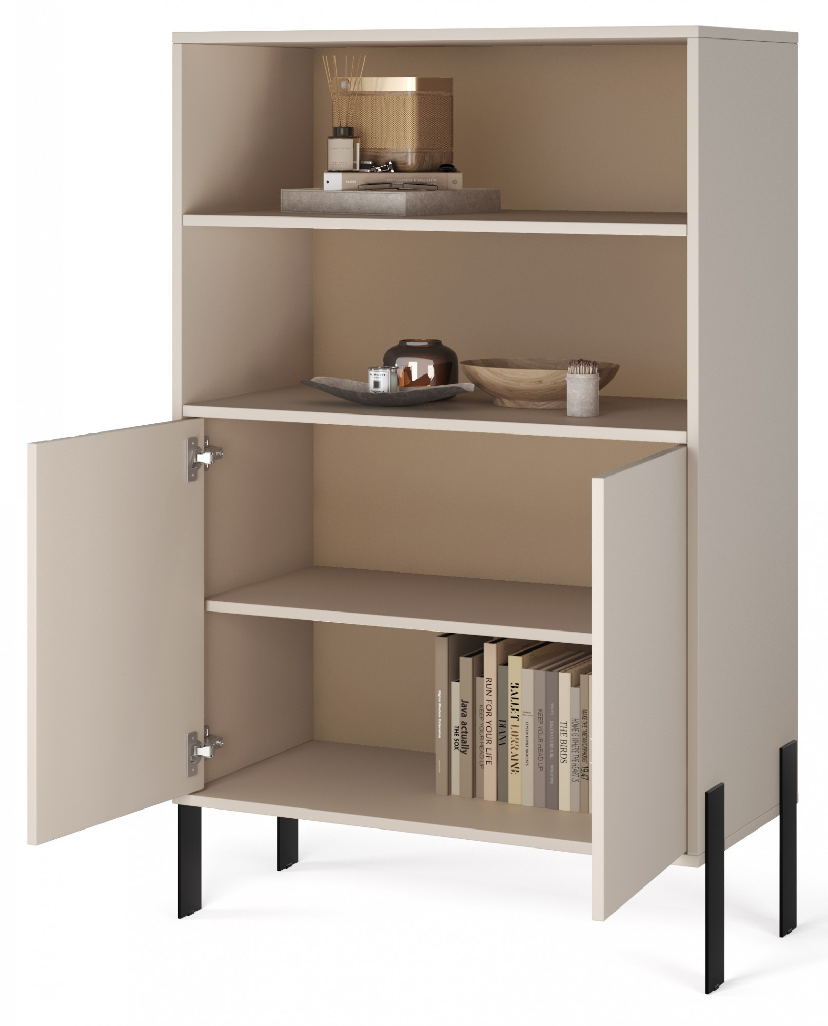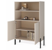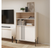 Vitrína **Nexo** je elegantní a funkční nábytek, který se skvěle hodí do obývacího pokoje, jídelny nebo pracovny. Její moderní forma a jemné dekorativní detaily zajišťují, že se dokonale hodí do současných interiérů, přidávajíc jim styl a lehkost. Model je dostupný ve dvou módních barevných variantách: **Artisan**, inspirovaný přírodní strukturou dřeva, a **Kašmír**, který přináší do interiéru eleganci a moderní, tlumenou barevnost. Charakteristickým prvkem kolekce jsou černé, dekorativní lišty na čelní straně a **kovové nohy**, které zdůrazňují moderní charakter nábytku a dodávají mu vizuální lehkost.