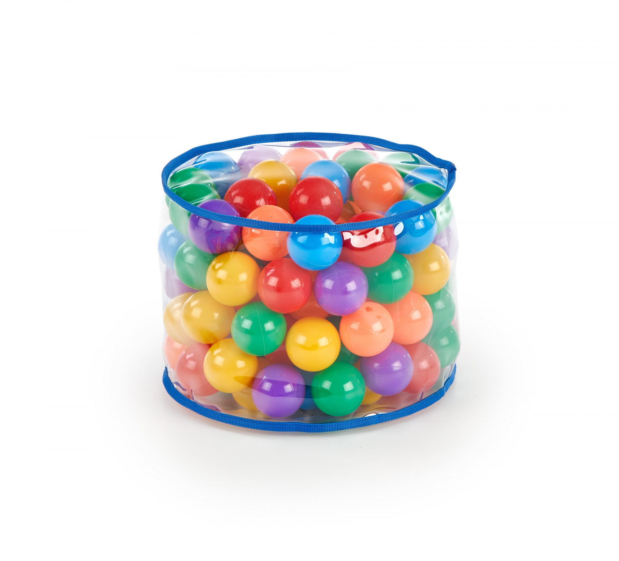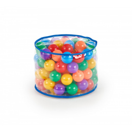 rozměry: fi39/42 cm, materiál: certifikovaný, netoxický plast bez zápachu, barva: kuličky - vícebarevné, potah - bezbarvý s modrými stuhami