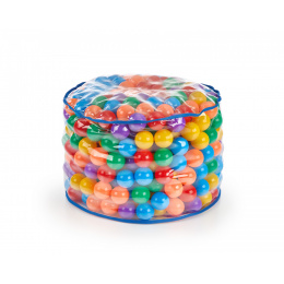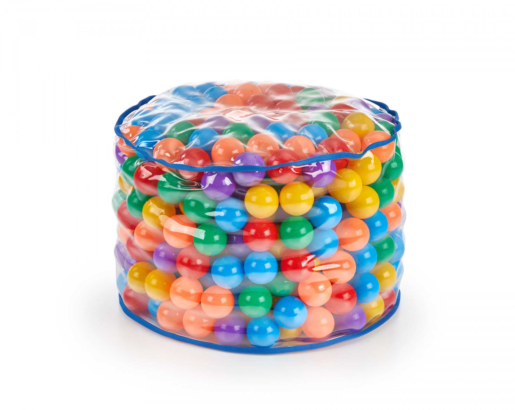 rozměry: fi65/42 cm, materiál: certifikovaný, netoxický plast bez zápachu, barva: kuličky - vícebarevné, potah - bezbarvý s modrými stuhami