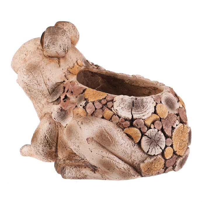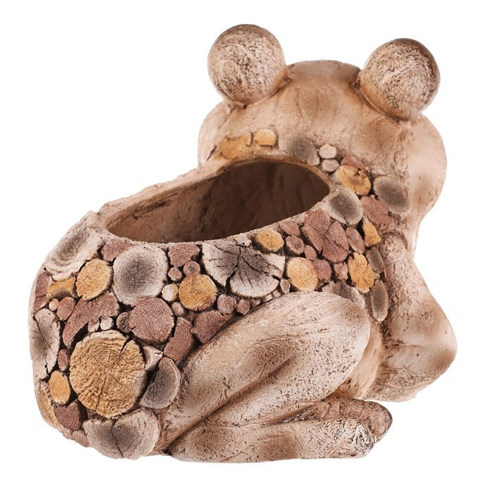 Dekorativní obal na květiny ve tvaru žáby je vyroben z magnesia s povrchem připomínajícím dřevo, který dodává přírodní vzhled. Jeho detailně propracované tělo a výrazné oči vytvářejí zajímavý dekorativní prvek vhodný do zahrady i na terasu. Obal je stabilní a navržený tak, aby bezpečně pojmul květináč či rostlinu. Hnědá barevná varianta ladí s přírodními odstíny exteriéru a podtrhuje rustikální charakter dekorace. Díky odolnému materiálu se snadno udržuje a je vhodný pro venkovní použití.