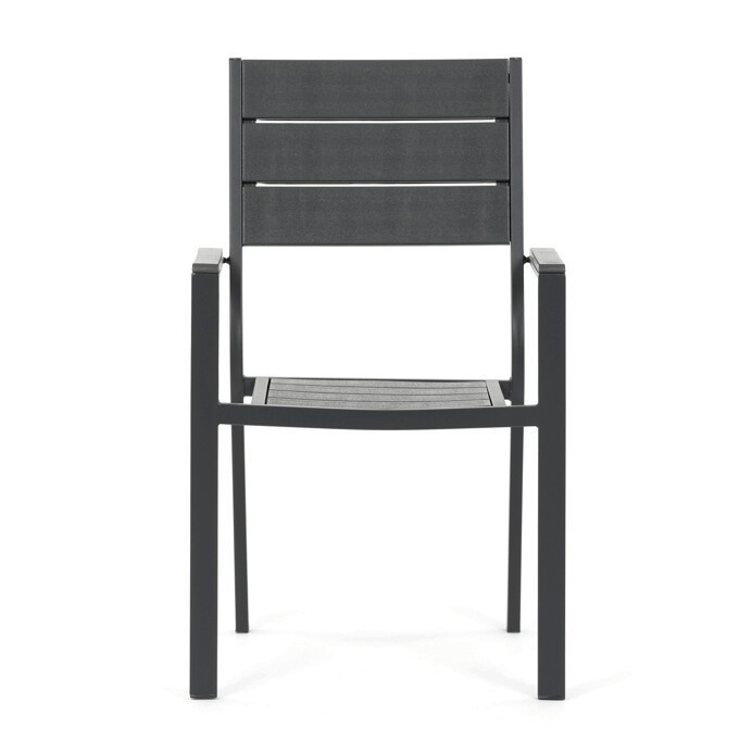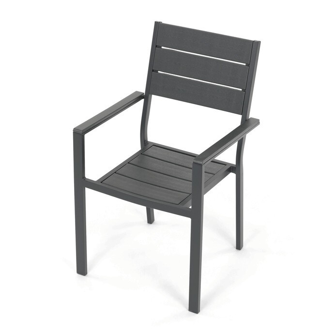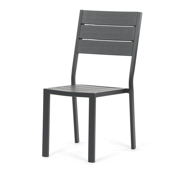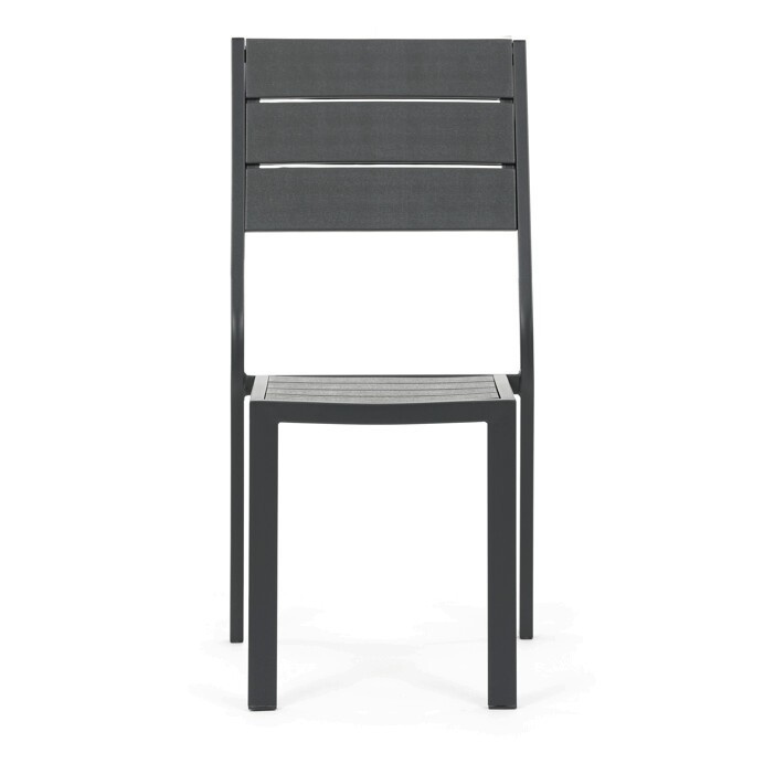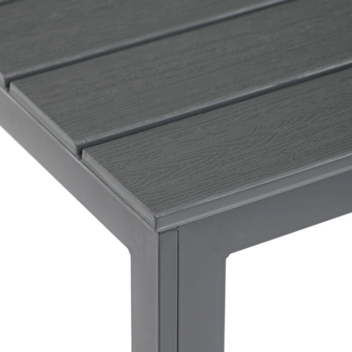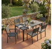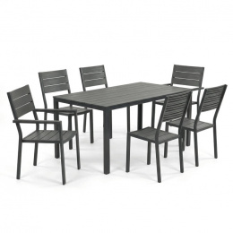 Zahradní sestava AZS-B1656 GREY nabízí praktické řešení pro venkovní posezení s rodinou či přáteli. Stůl o rozměrech 156 × 78 cm má desku z polywoodu, materiálu odolného vůči povětrnostním vlivům a snadno udržovatelného, který věrně imituje vzhled dřeva. Pevná kovová konstrukce v šedém odstínu zajišťuje stabilitu a dlouhou životnost celé sestavy. Součástí je šest židlí s kovovým rámem a sedáky i opěradly tvořenými voděodolnými lamelami, které doplňují celkový design a poskytují pohodlné sezení. Díky kombinaci materiálů je nábytek vhodný pro pravidelné venkovní použití na terasách, zahradách či balkonech.