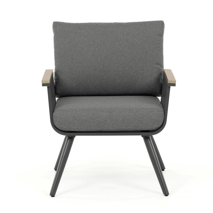 Zahradní set v šedém provedení kombinuje pevný hliníkový rám s odolnými polywoodovými prvky v dekoru divokého dubu, které zajišťují dlouhou životnost i při venkovním použití. Součástí sestavy jsou pohodlná křesla a dvoumístná lavice s polstrováním v neutrální šedé barvě, které podporují komfort během odpočinku. Deska stolu je vyrobena z bezpečnostního skla, které snadno udržuje čistotu a doplňuje moderní vzhled celé sestavy. Konstrukce nábytku je navržena pro stabilitu a odolnost vůči povětrnostním vlivům, což umožňuje využití na terase, zahradě či balkóně. Díky kombinaci materiálů a designu se set hodí do různých venkovních prostorů, kde poskytuje praktické i estetické řešení pro posezení.