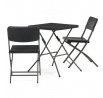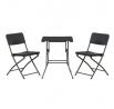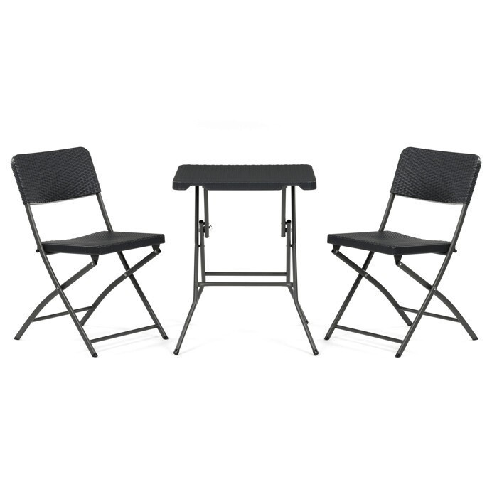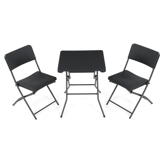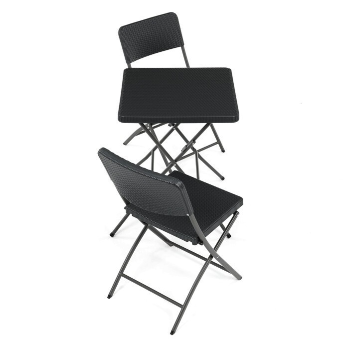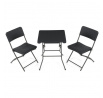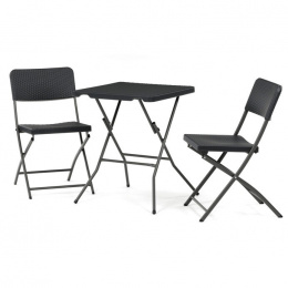 Zahradní sestava zahrnuje kompaktní stůl o rozměru 60 cm a dvě skládací židle, které jsou vyrobeny z odolného šedého plastu a kovu. Plastová deska stolu je snadno udržovatelná a odolná vůči povětrnostním vlivům, zatímco kovová podnož zajišťuje stabilitu a pevnost celé sestavy. Židle jsou navrženy pro jednoduché skládání a skladování, což usnadňuje manipulaci a šetří místo při uskladnění mimo sezónu. Celý set je ideální pro menší zahradní prostory, balkony nebo terasy, kde je potřeba praktický a funkční nábytek s dlouhou životností. Neutrální šedá barva umožňuje snadné sladění s různými venkovními dekoracemi.