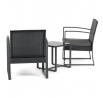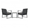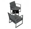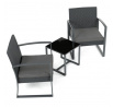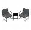 Zahradní set 1+2 v šedém provedení kombinuje pevnou kovovou konstrukci s odolným polyratanem, který je vhodný pro venkovní použití. Součástí jsou dvě pohodlná křesla s polstrovanými sedáky potaženými šedou látkou, která zajišťují komfortní posezení. Stolová deska je vyrobena z černého tvrzeného skla, které je snadno udržovatelné a dodává celému setu moderní vzhled. Stabilní rám z kovu zaručuje dlouhou životnost a bezpečnost při užívání. Díky kompaktním rozměrům je set ideální pro balkóny, terasy či menší zahrady.