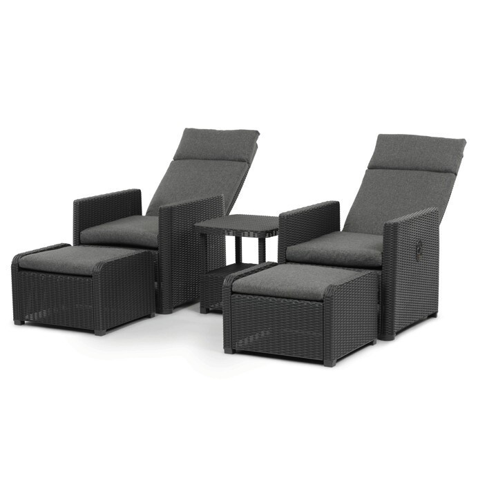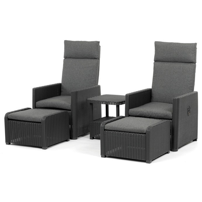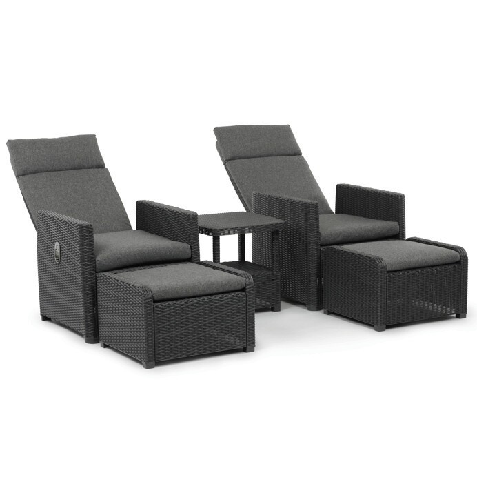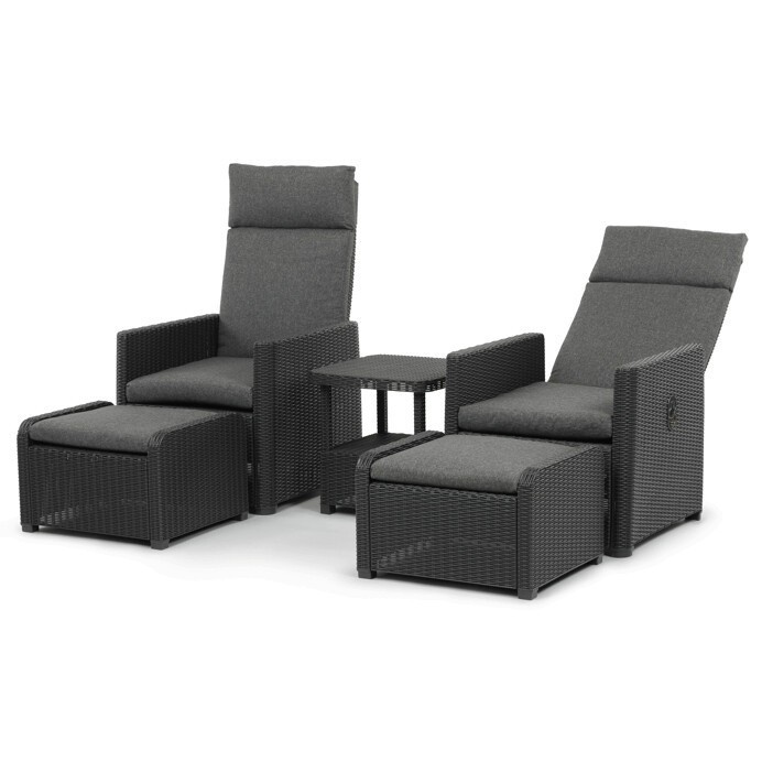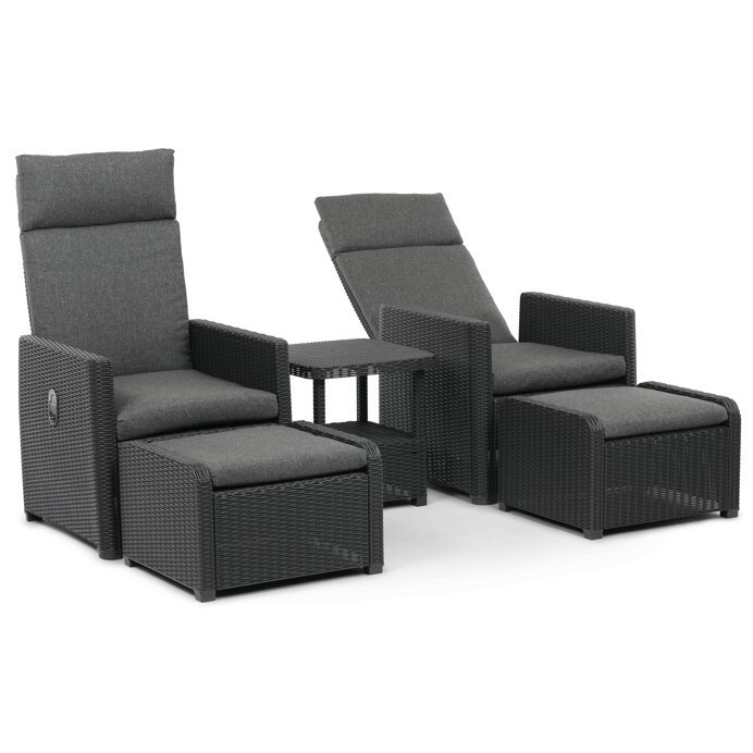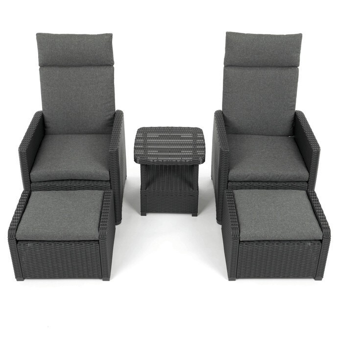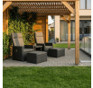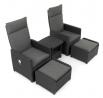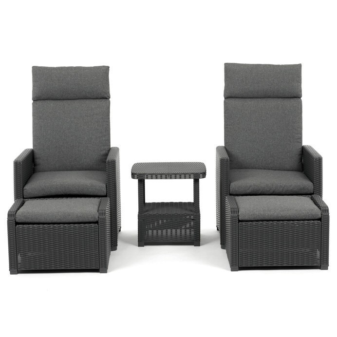 Zahradní set 1+2 v šedém provedení kombinuje pevný kovový rám s výplní z polyratanu které zajišťuje snadnou údržbu a dlouhou životnost i při venkovním použití. Sada obsahuje dvě polohovací křesla s nastavitelným sklonem opěradla pro maximální komfort a dva bonusové taburety, které lze využít jako podnožky nebo další sedací plochy. Součástí je také praktický stolek s deskou z umělého ratanu, který doplňuje celkový vzhled a funkčnost setu. Ideální volba pro relaxaci na zahradě, terase či balkóně.
