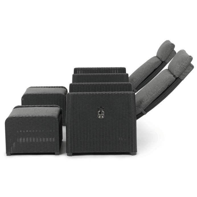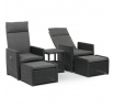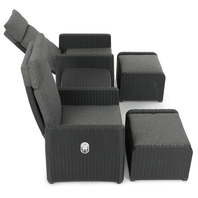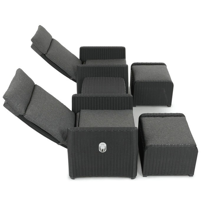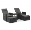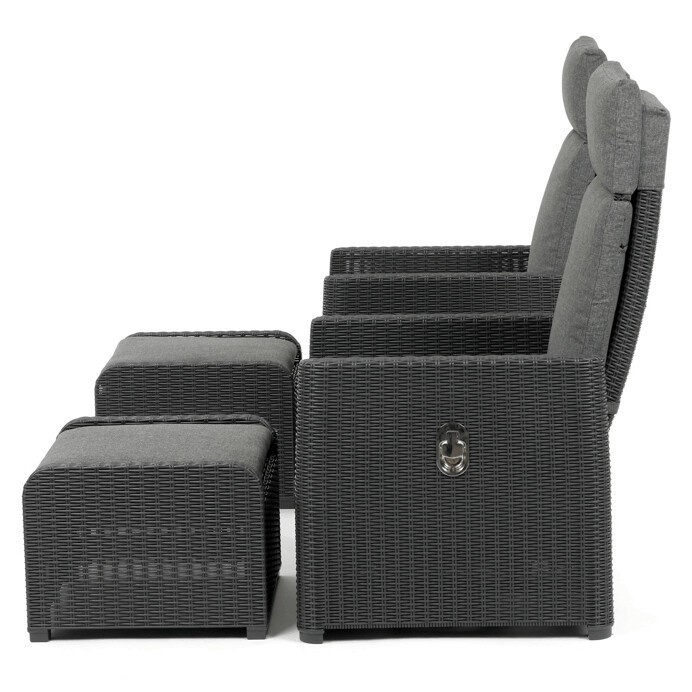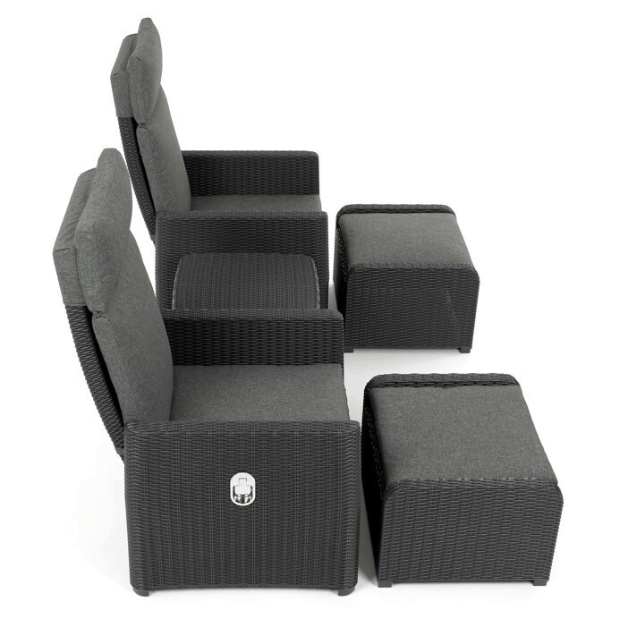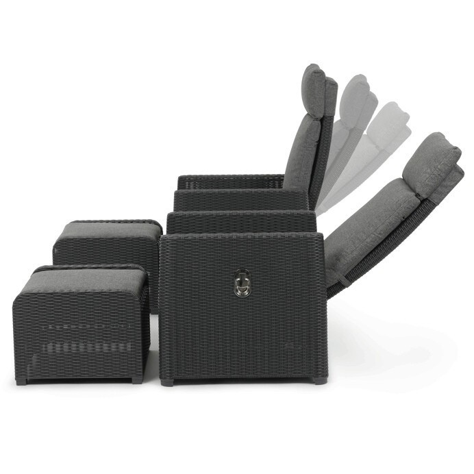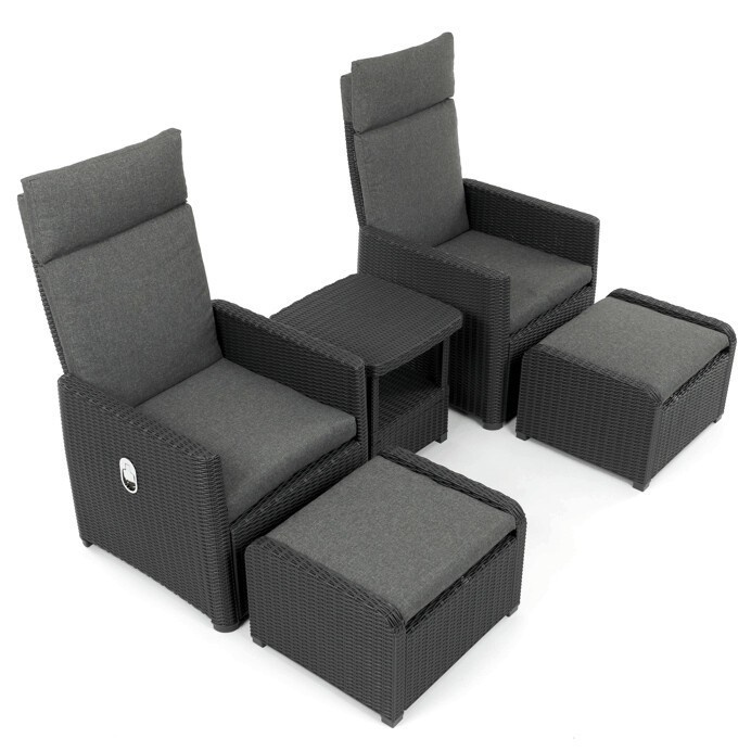 Zahradní set 1+2 v šedém provedení kombinuje pevný kovový rám s výplní z polyratanu které zajišťuje snadnou údržbu a dlouhou životnost i při venkovním použití. Sada obsahuje dvě polohovací křesla s nastavitelným sklonem opěradla pro maximální komfort a dva bonusové taburety, které lze využít jako podnožky nebo další sedací plochy. Součástí je také praktický stolek s deskou z umělého ratanu, který doplňuje celkový vzhled a funkčnost setu. Ideální volba pro relaxaci na zahradě, terase či balkóně.