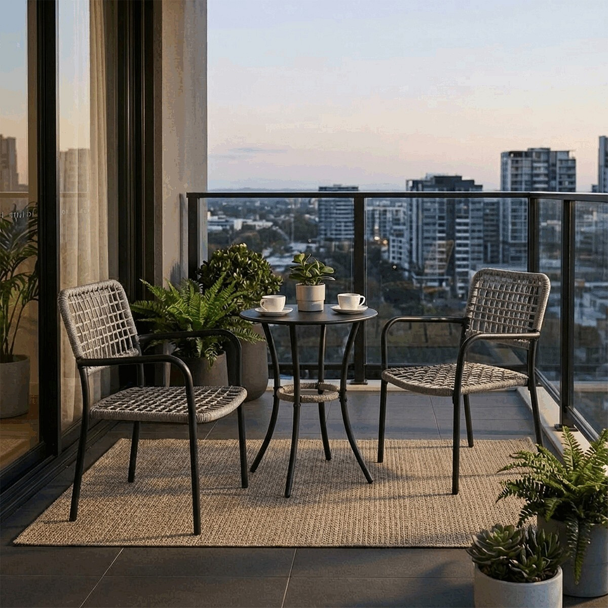 Balkónový set, kov, polyratan, šedá, AZ-L1103 GREY