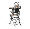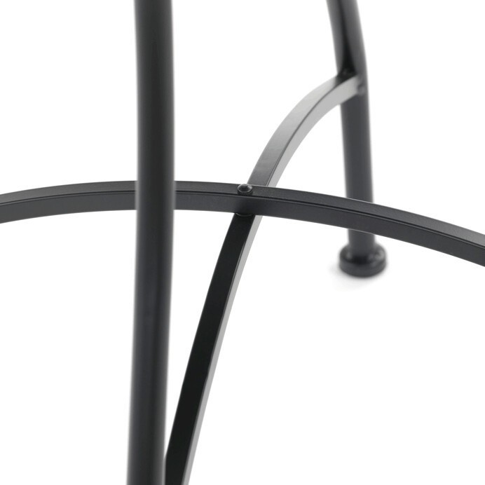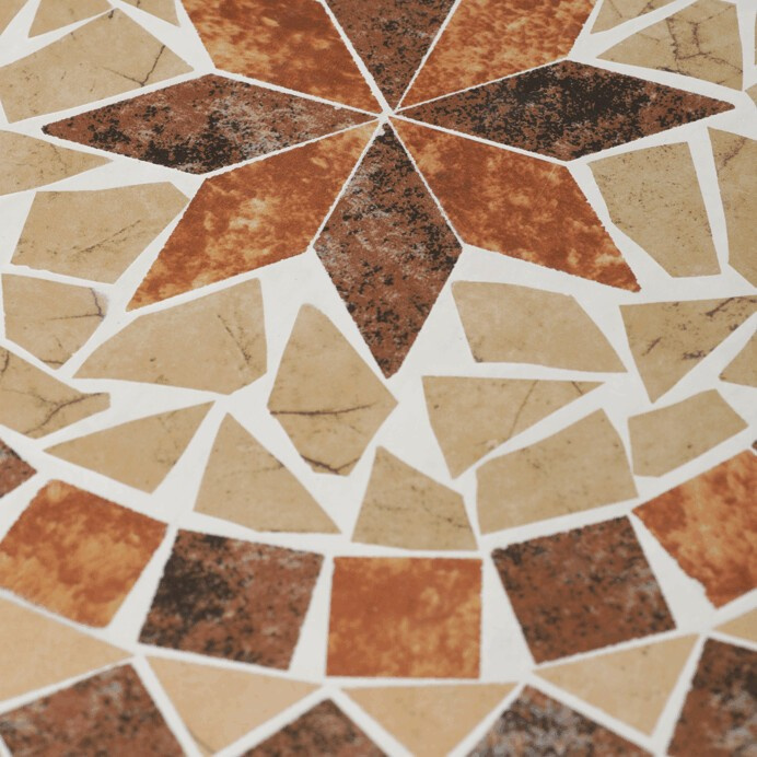 Zahradní set sestávající z kulatého stolu a dvou židlí kombinuje pevnou kovovou konstrukci s dekorativní keramickou mozaikou na deskách. Kovové nohy stolu i židlí jsou tvarované do elegantních oblouků a zdobeny jemnými kovanými detaily, které dodávají celku lehkost a stabilitu. Keramická mozaika v přírodních a teplých odstínech vytváří výrazný vizuální efekt a zároveň je snadno udržovatelná. Set je vhodný pro venkovní použití na balkónech či terasách, kde poskytuje pohodlné posezení pro dvě osoby. Díky kombinaci materiálů je navržen pro dlouhou životnost a odolnost vůči povětrnostním vlivům.
