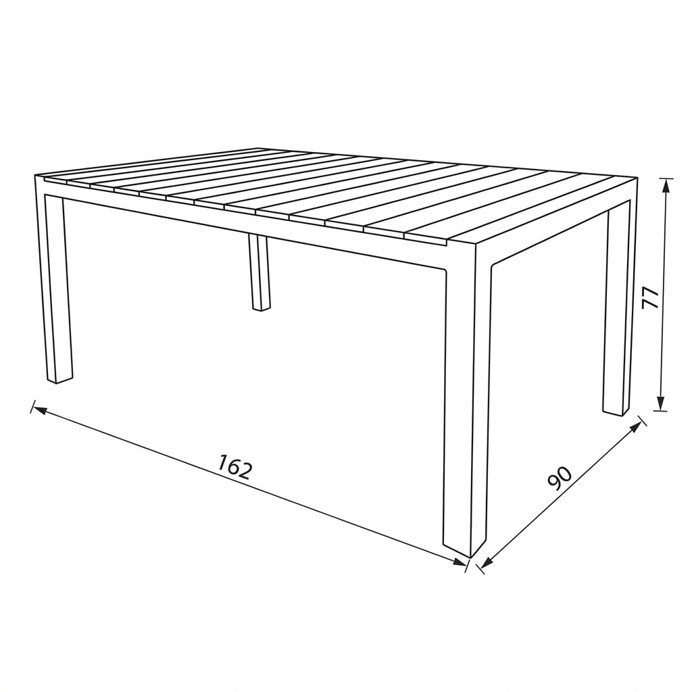 Zahradní stůl o rozměrech 160x90x75 cm kombinuje moderní černou hliníkovou konstrukci s odolnou deskou z polywoodu v dekoru dubu, která je navržena pro dlouhou životnost a snadnou údržbu. Pevná hliníková podnož zajišťuje stabilitu a odolnost vůči povětrnostním vlivům, což umožňuje využití stolu venku po celý rok. Deska stolu je tvořena z vysoce odolného polywoodu, který věrně imituje přírodní dřevo a zároveň odolává vlhkosti a UV záření. Nadčasový design s čistými liniemi se hodí do různých zahradních aranžmá a vytváří příjemné prostředí pro posezení i venkovní stolování. Stůl je vhodný pro běžné zahradní využití s důrazem na kombinaci funkčnosti a estetického vzhledu.