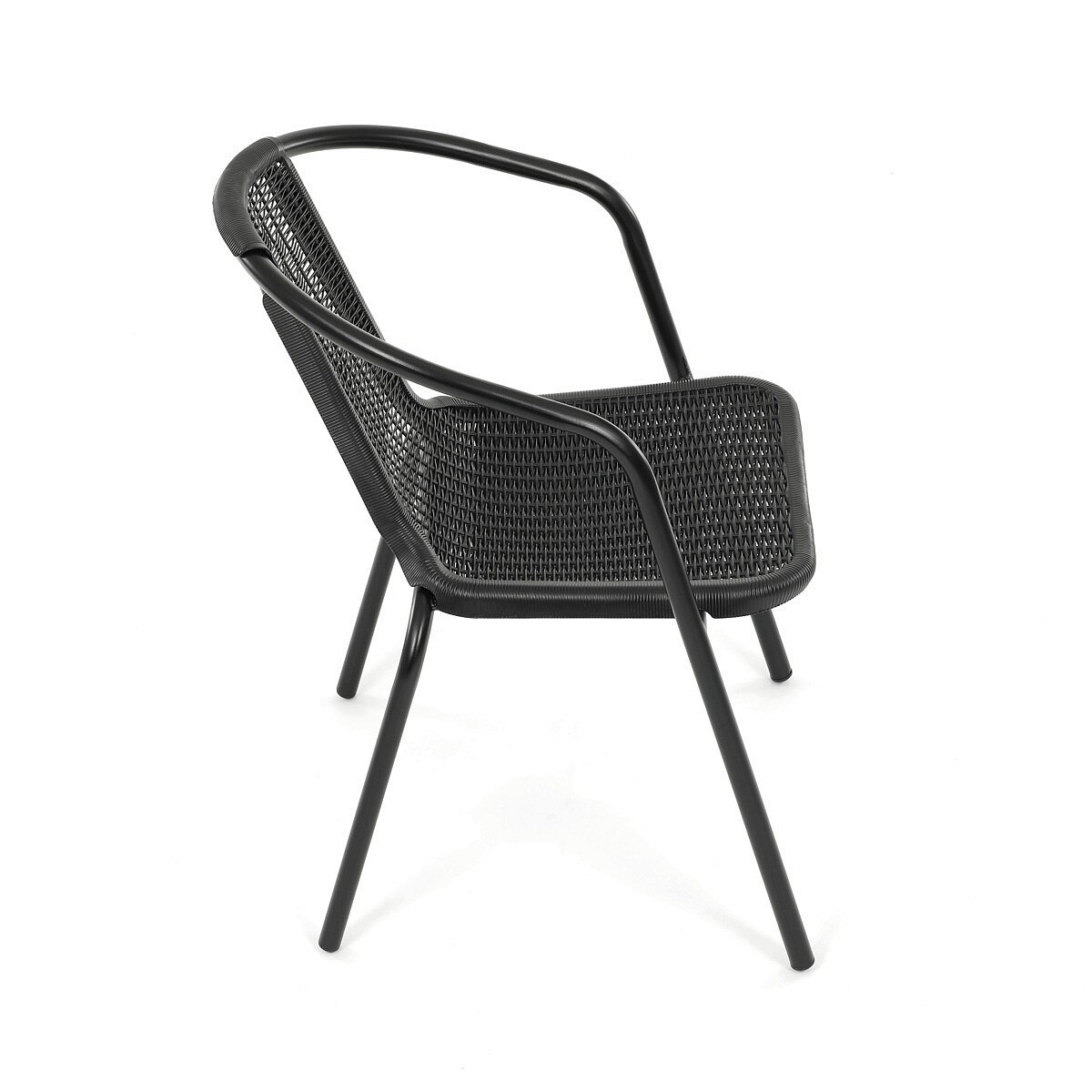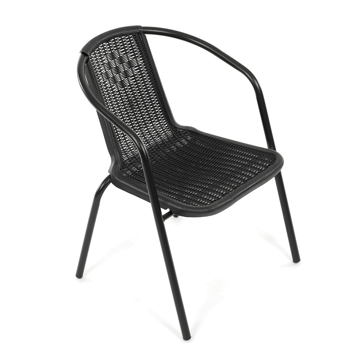 Zahradní židle v černém provedení kombinuje pevný kovový rám s odolným plastovým sedákem a opěradlem, které jsou navrženy pro snadnou údržbu a dlouhou životnost. Díky stohovatelnému designu umožňuje efektivní skladování a šetří místo při nepoužívání. Zaoblené opěrky rukou a ergonomicky tvarovaný sedák zajišťují pohodlné posezení během venkovních aktivit. Stabilní kovové nohy jsou opatřeny plastovými krytkami, které chrání podlahu a zvyšují stabilitu. Černá barva dodává židli univerzální vzhled vhodný pro různé typy zahradního nábytku.