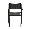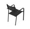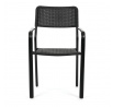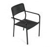 Zahradní židle v černém provedení kombinuje pevný kovový rám s odolným plastovým sedákem a opěradlem, které jsou navrženy pro dlouhou životnost a snadnou údržbu. Díky stohovatelnému designu umožňuje efektivní skladování a úsporu místa. Područky zajišťují pohodlné opření rukou během posezení. Jednoduchý a praktický tvar židle se hodí do různých venkovních prostor, jako jsou terasy, zahrady nebo balkony.