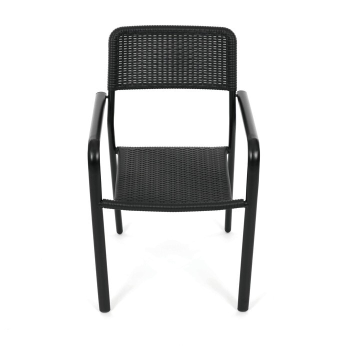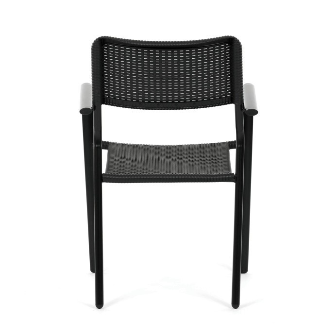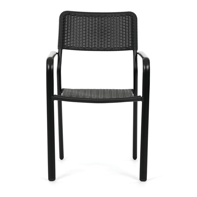 Zahradní židle v černém provedení kombinuje pevný kovový rám s odolným plastovým sedákem a opěradlem, které jsou navrženy pro dlouhou životnost a snadnou údržbu. Díky stohovatelnému designu umožňuje efektivní skladování a úsporu místa. Područky zajišťují pohodlné opření rukou během posezení. Jednoduchý a praktický tvar židle se hodí do různých venkovních prostor, jako jsou terasy, zahrady nebo balkony.