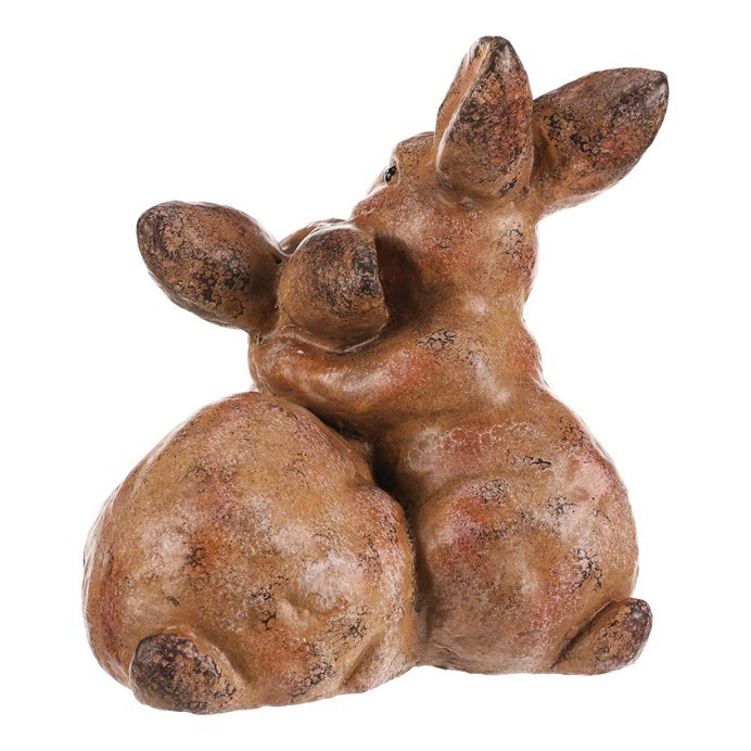 Keramická dekorace zobrazující zaječí pár v hnědém provedení přináší do interiéru přírodní a veselou atmosféru. Detailně propracované tělo figurek s jemnou patinou zvýrazňuje jejich realistický vzhled a texturu. Dekorace je vhodná pro umístění na poličku, komodu nebo okenní parapet, kde vynikne jako výrazný doplněk. Díky pevnému keramickému základu je snadná na údržbu a navržena pro dlouhou životnost. Je ideální pro milovníky přírody a zvířecích motivů, kteří chtějí oživit svůj domov nebo pracovní prostor.