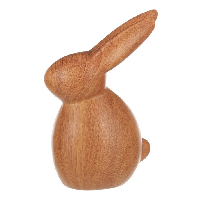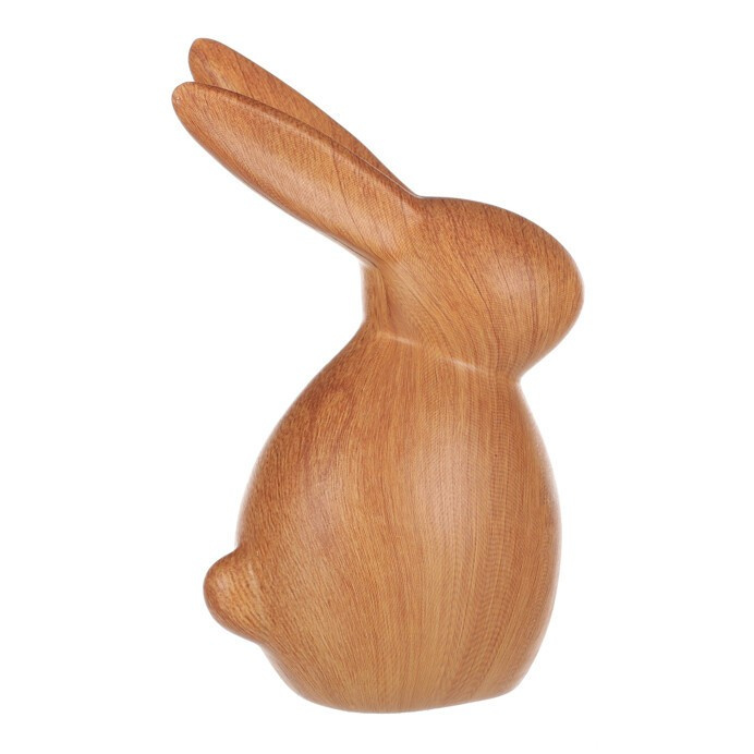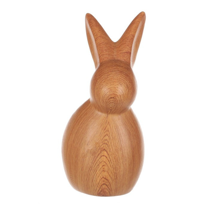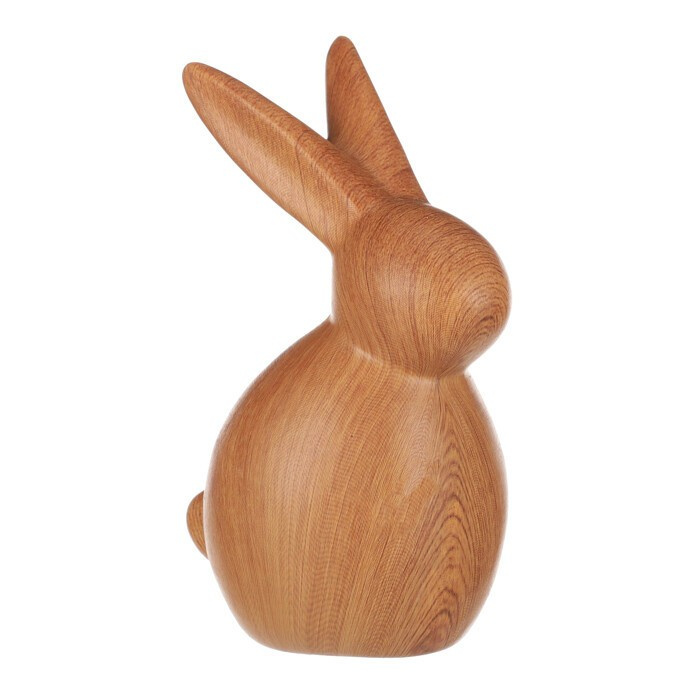 Keramická figurka zajíce v dřevěném stylu je krásným doplňkem velikonoční výzdoby. Jeho zpodobnění je jednoduché, bez detailů, což z něj činí univerzální a vysoce elegantní ozdobný prvek. Nádherná barva dřeva s letokruhy umocňuje jedinečnost této dekorace. Skvěle se hodí do chalup, nebo chat, kde je interiér laděný do přírodního designu. Na druhou stranu, v moderním prostředí bude úžasně kontrastovat a vynikne v něm jeho silueta a půvab imitovaného dřeva. V jednoduchosti je krása, a u této figurky to platí obzvláště. Vaše jarní výzdoba tím získá jednoduše a hravě nový vzhled.