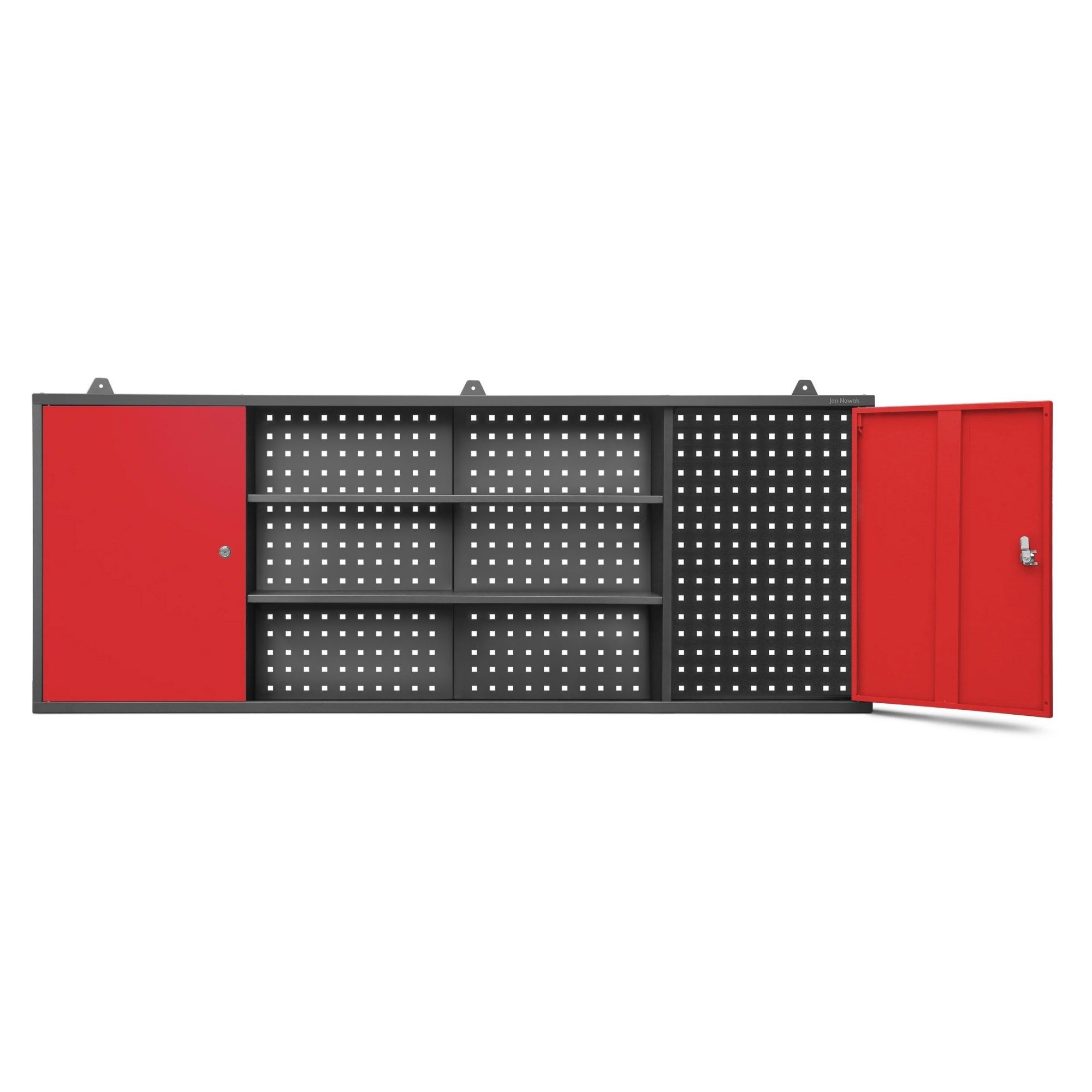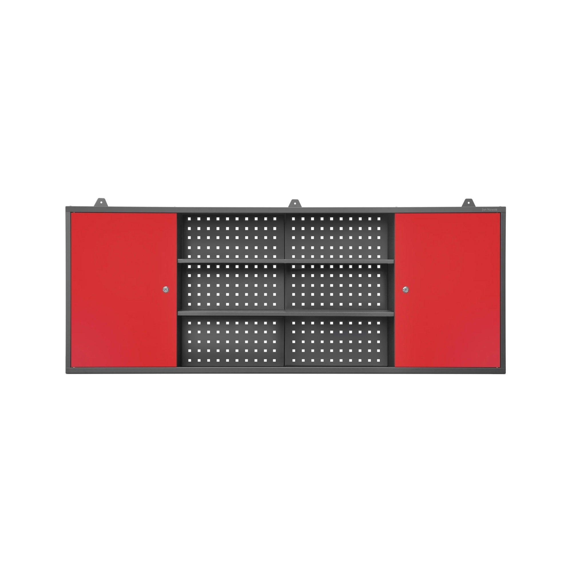 Závěsná dílenská skříňka LEO, 1600 x 600 x 200 mm, antracitově-červená
