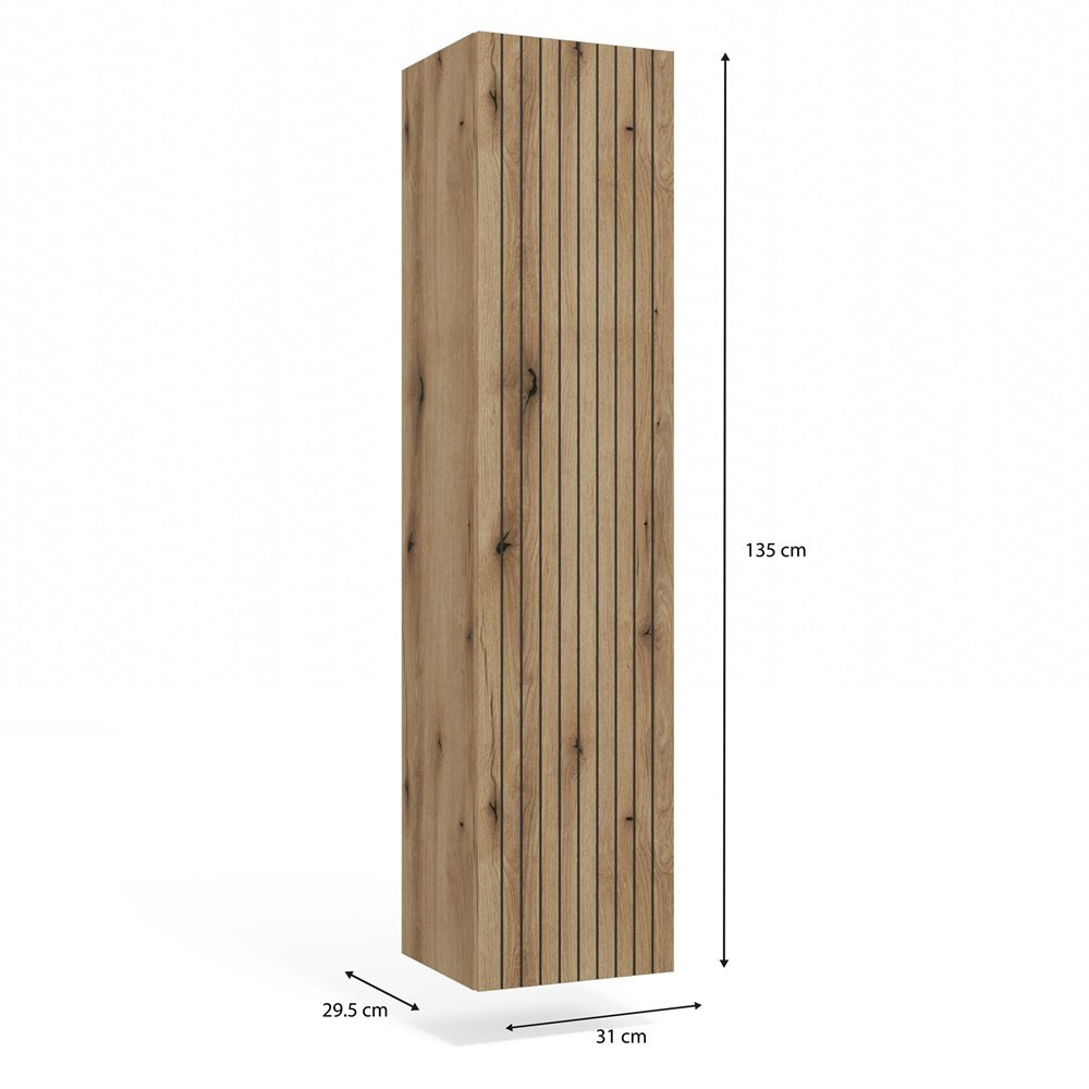 Objevte koupelnovou skříňku Torio – elegantní spojení funkčnosti a moderního designu pro vaši koupelnu. Teplý odstín dubu evoke a drážkovaný povrch čela dodávají nábytku jedinečný styl. Uvnitř najdete prakticky členěný úložný prostor pro univerzální využití. Bezúchytkové otevírání zajišťuje pohodlné a stylové každodenní používání.