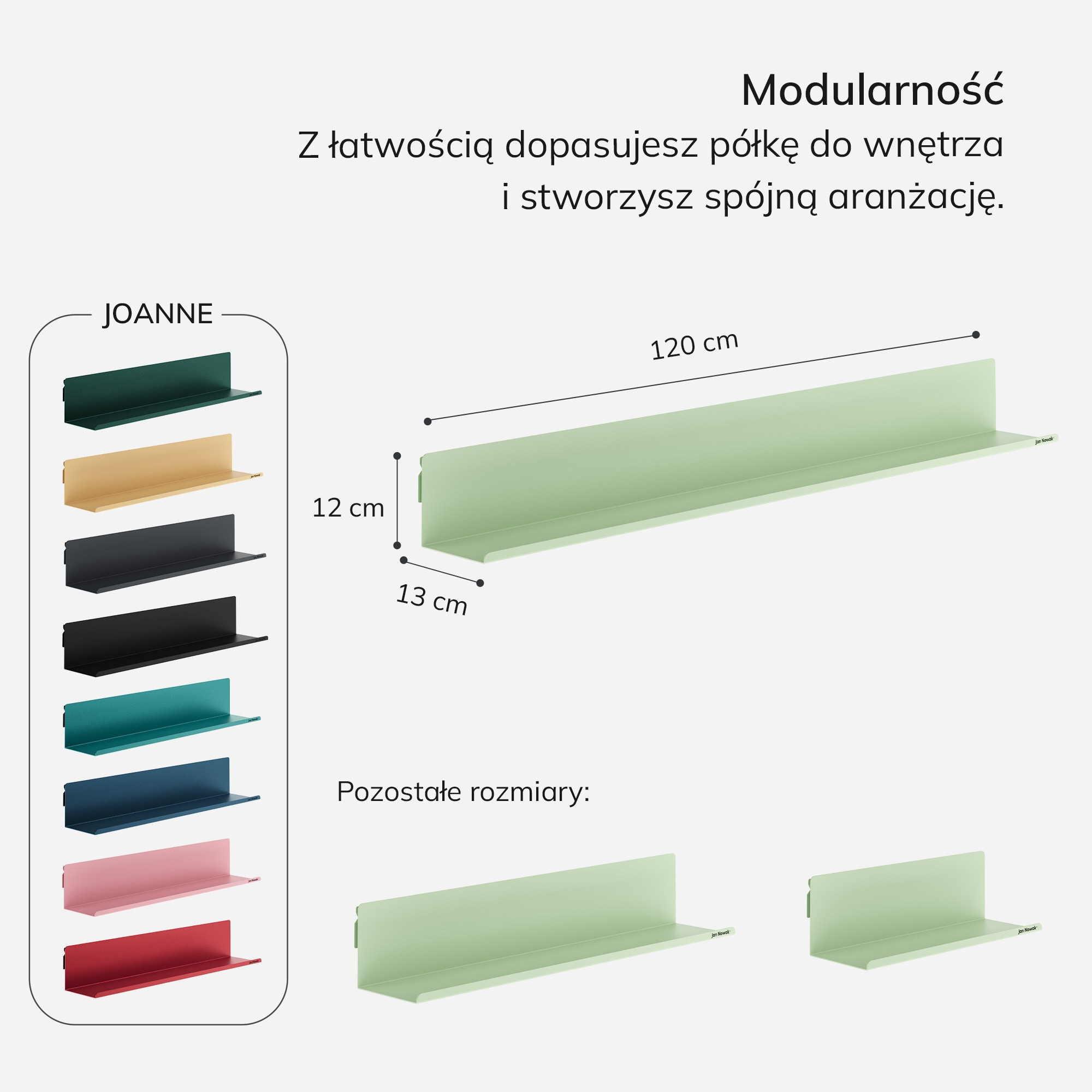 #html-body [data-pb-style=JJ0XUVD]{justify-content:flex-start;display:flex;flex-direction:column;background-position:left top;background-size:cover;background-repeat:no-repeat;background-attachment:scroll}#html-body [data-pb-style=FS6O1H0]{display:none}#html-body [data-pb-style=GWENB3X],#html-body [data-pb-style=OLYU570]{background-position:left top;background-size:cover;background-repeat:no-repeat;background-attachment:scroll}#html-body [data-pb-style=OLYU570]{justify-content:flex-start;display:flex;flex-direction:column;margin-bottom:30px}#html-body [data-pb-style=GWENB3X]{align-self:stretch}#html-body [data-pb-style=TNJN12I]{display:flex;width:100%}#html-body [data-pb-style=EABFL3Q],#html-body [data-pb-style=EHHAX60],#html-body [data-pb-style=O47A4WO]{justify-content:flex-start;display:flex;flex-direction:column;background-position:left top;background-size:cover;background-repeat:no-repeat;background-attachment:scroll;width:8.33333%;align-self:stretch}#html-body [data-pb-style=EABFL3Q],#html-body [data-pb-style=O47A4WO]{width:41.6667%;align-self:center}#html-body [data-pb-style=O47A4WO]{width:50%;align-self:stretch}#html-body [data-pb-style=XNWGR5K]{border-style:none}#html-body [data-pb-style=MT9KVA1],#html-body [data-pb-style=V3JWA56]{max-width:100%;height:auto}#html-body [data-pb-style=D3VJLT5]{justify-content:flex-start;display:flex;flex-direction:column;background-position:left top;background-size:cover;background-repeat:no-repeat;background-attachment:scroll;margin-bottom:10px}#html-body [data-pb-style=OADRPML]{margin-top:40px;margin-bottom:40px}#html-body [data-pb-style=JVI2EH0],#html-body [data-pb-style=VDL7IRO]{background-position:left top;background-size:cover;background-repeat:no-repeat;background-attachment:scroll}#html-body [data-pb-style=VDL7IRO]{justify-content:flex-start;display:flex;flex-direction:column;margin-bottom:40px}#html-body [data-pb-style=JVI2EH0]{align-self:stretch}#html-body [data-pb-style=SMGWB5H]{display:flex;width:100%}#html-body [data-pb-style=BFU6K3M]{justify-content:flex-start;display:flex;flex-direction:column;background-position:left top;background-size:cover;background-repeat:no-repeat;background-attachment:scroll;width:50%;align-self:stretch}#html-body [data-pb-style=SMFDOY9]{border-style:none}#html-body [data-pb-style=EGYO8OH],#html-body [data-pb-style=O0VSU0V]{max-width:100%;height:auto}#html-body [data-pb-style=IC82XNI]{justify-content:flex-start;display:flex;flex-direction:column;width:50%;align-self:center}#html-body [data-pb-style=D5BAXYV],#html-body [data-pb-style=IC82XNI],#html-body [data-pb-style=L0ONK3N]{background-position:left top;background-size:cover;background-repeat:no-repeat;background-attachment:scroll}#html-body [data-pb-style=D5BAXYV]{justify-content:flex-start;display:flex;flex-direction:column;margin-bottom:40px}#html-body [data-pb-style=L0ONK3N]{align-self:stretch}#html-body [data-pb-style=JVLNDR0]{display:flex;width:100%}#html-body [data-pb-style=QFE1UMR],#html-body [data-pb-style=WJPCEOO]{justify-content:flex-start;display:flex;flex-direction:column;background-position:left top;background-size:cover;background-repeat:no-repeat;background-attachment:scroll;width:50%;align-self:center}#html-body [data-pb-style=WJPCEOO]{align-self:stretch}#html-body [data-pb-style=VRV77D8]{border-style:none}#html-body [data-pb-style=CK42SOG],#html-body [data-pb-style=FKTP7W6]{max-width:100%;height:auto}#html-body [data-pb-style=KCOGJ4G],#html-body [data-pb-style=LKB7SKI]{background-position:left top;background-size:cover;background-repeat:no-repeat;background-attachment:scroll}#html-body [data-pb-style=KCOGJ4G]{justify-content:flex-start;display:flex;flex-direction:column;margin-bottom:40px}#html-body [data-pb-style=LKB7SKI]{align-self:stretch}#html-body [data-pb-style=Y3TMO61]{display:flex;width:100%}#html-body [data-pb-style=E7FPXGY]{justify-content:flex-start;display:flex;flex-direction:column;background-position:left top;background-size:cover;background-repeat:no-repeat;background-attachment:scroll;width:50%;align-self:stretch}#html-body [data-pb-style=MUXEL0O]{border-style:none}#html-body [data-pb-style=SY68GYK],#html-body [data-pb-style=TXAU9EE]{max-width:100%;height:auto}#html-body [data-pb-style=GWHY8T5]{justify-content:flex-start;display:flex;flex-direction:column;background-position:left top;background-size:cover;background-repeat:no-repeat;background-attachment:scroll;width:50%;align-self:center}@media only screen and (max-width: 768px) { #html-body [data-pb-style=MUXEL0O],#html-body [data-pb-style=SMFDOY9],#html-body [data-pb-style=VRV77D8],#html-body [data-pb-style=XNWGR5K]{border-style:none} }Vlastnosti závěsné police: Odolná ocelová konstrukce Skrytý systém upevnění Plná zadní stěna Zaoblená přední hrana Jednoduchá a rychlá montáž Kolekce Fresh Style: pastelově zelená barva Závěsná police JOANNE – svěží odstín pastelové zelené Pastelově zelená barva závěsné police JOANNE z kolekce Fresh Style dodává interiéru přirozený a osvěžující charakter. Jemná barva se skvěle hodí k světlým aranžmá a zároveň přináší lehkost do domácího nebo kancelářského prostoru. Nástěnná police nabízí spoustu místa na oblíbené knihy, potřebné dokumenty k práci a doplňky, a také umožňuje vystavit dekorace. Odolná konstrukce Zelená police o délce 1200 mm je vyrobena z vysoce kvalitní oceli o tloušťce 1,1 mm. Práškové lakování chrání povrch před mechanickým poškozením, korozí a vyblednutím, což způsobuje, že police i po letech vypadá jako nová a pastelový odstín stále okouzluje.Komfortní používání Plná zadní stěna chrání umístěné předměty, zabraňuje jejich posouvání a pádu z police. Zaoblená přední hrana zvyšuje bezpečnost tím, že minimalizuje riziko náhodného úderu. Díky tomu se kovová polička hodí i do dětského pokoje.Modulární forma a snadná montáž Skrytý systém upevnění umožňuje užívat si minimalistick