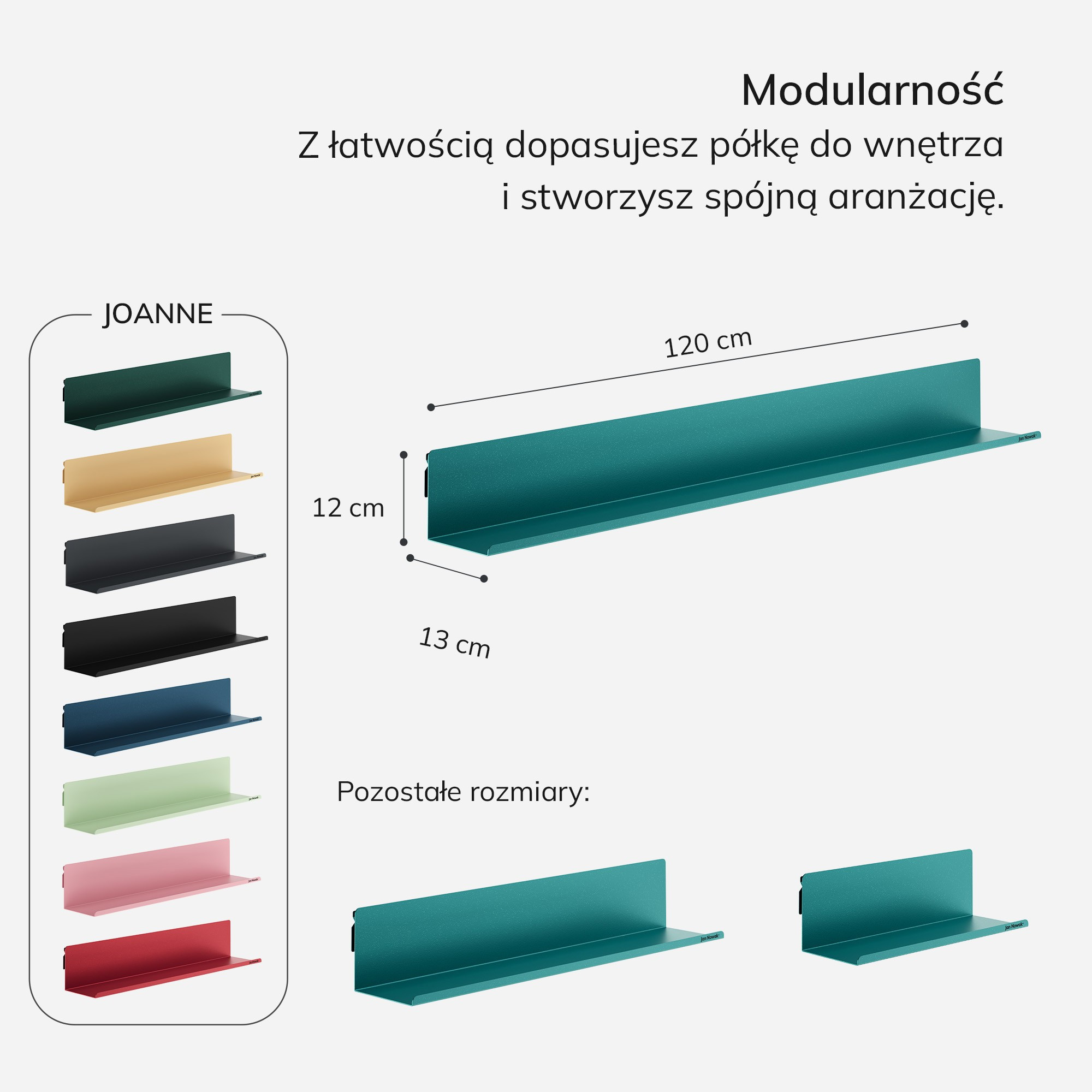 #html-body [data-pb-style=U4B8OV2]{justify-content:flex-start;display:flex;flex-direction:column;background-position:left top;background-size:cover;background-repeat:no-repeat;background-attachment:scroll}#html-body [data-pb-style=KRF36JO]{display:none}#html-body [data-pb-style=BF1MF37],#html-body [data-pb-style=JJSWS1X]{background-position:left top;background-size:cover;background-repeat:no-repeat;background-attachment:scroll}#html-body [data-pb-style=JJSWS1X]{justify-content:flex-start;display:flex;flex-direction:column;margin-bottom:30px}#html-body [data-pb-style=BF1MF37]{align-self:stretch}#html-body [data-pb-style=QA5V3GU]{display:flex;width:100%}#html-body [data-pb-style=A03J1BA],#html-body [data-pb-style=C2GIBPJ],#html-body [data-pb-style=F3J0OUA]{justify-content:flex-start;display:flex;flex-direction:column;background-position:left top;background-size:cover;background-repeat:no-repeat;background-attachment:scroll;width:8.33333%;align-self:stretch}#html-body [data-pb-style=A03J1BA],#html-body [data-pb-style=F3J0OUA]{width:41.6667%;align-self:center}#html-body [data-pb-style=A03J1BA]{width:50%;align-self:stretch}#html-body [data-pb-style=BYAYTKD]{border-style:none}#html-body [data-pb-style=RKLYEIY],#html-body [data-pb-style=TWUBM7E]{max-width:100%;height:auto}#html-body [data-pb-style=FVSNRTP]{justify-content:flex-start;display:flex;flex-direction:column;background-position:left top;background-size:cover;background-repeat:no-repeat;background-attachment:scroll;margin-bottom:10px}#html-body [data-pb-style=ISUNLPM]{margin-top:40px;margin-bottom:40px}#html-body [data-pb-style=ENONAX3],#html-body [data-pb-style=WVYXCV5]{background-position:left top;background-size:cover;background-repeat:no-repeat;background-attachment:scroll}#html-body [data-pb-style=ENONAX3]{justify-content:flex-start;display:flex;flex-direction:column;margin-bottom:40px}#html-body [data-pb-style=WVYXCV5]{align-self:stretch}#html-body [data-pb-style=P0SGCQ8]{display:flex;width:100%}#html-body [data-pb-style=CB5PTJF]{justify-content:flex-start;display:flex;flex-direction:column;background-position:left top;background-size:cover;background-repeat:no-repeat;background-attachment:scroll;width:50%;align-self:stretch}#html-body [data-pb-style=DDOWA24]{border-style:none}#html-body [data-pb-style=H9P3179],#html-body [data-pb-style=HG36KQV]{max-width:100%;height:auto}#html-body [data-pb-style=QIEWO6V]{justify-content:flex-start;display:flex;flex-direction:column;width:50%;align-self:center}#html-body [data-pb-style=I2SAA7L],#html-body [data-pb-style=QIEWO6V],#html-body [data-pb-style=SW49XJL]{background-position:left top;background-size:cover;background-repeat:no-repeat;background-attachment:scroll}#html-body [data-pb-style=I2SAA7L]{justify-content:flex-start;display:flex;flex-direction:column;margin-bottom:40px}#html-body [data-pb-style=SW49XJL]{align-self:stretch}#html-body [data-pb-style=HGFC2WU]{display:flex;width:100%}#html-body [data-pb-style=J0NSLNY],#html-body [data-pb-style=MVE9P84]{justify-content:flex-start;display:flex;flex-direction:column;background-position:left top;background-size:cover;background-repeat:no-repeat;background-attachment:scroll;width:50%;align-self:center}#html-body [data-pb-style=J0NSLNY]{align-self:stretch}#html-body [data-pb-style=O796H68]{border-style:none}#html-body [data-pb-style=CB7EK6L],#html-body [data-pb-style=JX874C1]{max-width:100%;height:auto}#html-body [data-pb-style=IB3A54N],#html-body [data-pb-style=SEK4GCK]{background-position:left top;background-size:cover;background-repeat:no-repeat;background-attachment:scroll}#html-body [data-pb-style=IB3A54N]{justify-content:flex-start;display:flex;flex-direction:column;margin-bottom:40px}#html-body [data-pb-style=SEK4GCK]{align-self:stretch}#html-body [data-pb-style=YO9DSR0]{display:flex;width:100%}#html-body [data-pb-style=V12TVMB]{justify-content:flex-start;display:flex;flex-direction:column;background-position:left top;background-size:cover;background-repeat:no-repeat;background-attachment:scroll;width:50%;align-self:stretch}#html-body [data-pb-style=BEEQEAG]{border-style:none}#html-body [data-pb-style=BLT0TE6],#html-body [data-pb-style=BM3NCFF]{max-width:100%;height:auto}#html-body [data-pb-style=XR0DN7T]{justify-content:flex-start;display:flex;flex-direction:column;background-position:left top;background-size:cover;background-repeat:no-repeat;background-attachment:scroll;width:50%;align-self:center}@media only screen and (max-width: 768px) { #html-body [data-pb-style=BEEQEAG],#html-body [data-pb-style=BYAYTKD],#html-body [data-pb-style=DDOWA24],#html-body [data-pb-style=O796H68]{border-style:none} }Vlastnosti závěsné police: Odolná konstrukce z oceli Skrytý systém upevnění Plná zadní stěna Zaoblená přední hrana Jednoduchá a rychlá montáž Mořská barva s třpytivými částečkami Sparkling Brilliance™ Závěsná police JOANNE v jedinečné mořské barvě Mořská závěsná police JOANNE je moderní prvek, který oživí každý interiér. Díky barvě Sparkling Brilliance™ se police třpytí jemnými odlesky, což jí dodává výjimečný charakter. Nástěnná police dokonale zapadá do domácích a kancelářských aranžmá ve stylu moderním a minimalistickém. Na úzké ploše se vejdou knihy, desky, dekorace a potřebné doplňky.Kovová police na léta Vyrobená z válcované oceli o tloušťce 1,1 mm a pokrytá barvou Sparkling Brilliance™ nástěnná police vyniká odolností proti poškození, korozi a vyblednutí. Model JOANNE si zachovává maximální funkčnost a skvělý vzhled i po mnoha letech.Řešení zvyšující komfort Plná zadní stěna police eliminuje riziko sklouznutí předmětů a zaoblená přední hrana zvyšuje komfort a bezpečnost používání. Kovovou poličku lze tedy bez obav pověsit i v dětském pokoji.Modulární police pro snadnou montáž Díky skrytému systému upevnění bez viditelných podpěr vypadá police lehce a esteticky. Jednoduchá montáž a možnost 