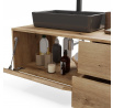 Objevte skříňku pod umyvadlo Torio – elegantní spojení funkčnosti a moderního designu pro vaši koupelnu. Teplý odstín dubu evoke a drážkovaný povrch čela dodávají nábytku jedinečný styl. Kombinace výklopných dvířek a dvou plně výsuvných zásuvek s funkcí pomalého dovírání dělá ze skříňky Tigo nejen dekorativní, ale především mimořádně praktický kus nábytku. Bezúchytkové otevírání zajišťuje pohodlné a stylové každodenní používání.
