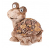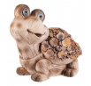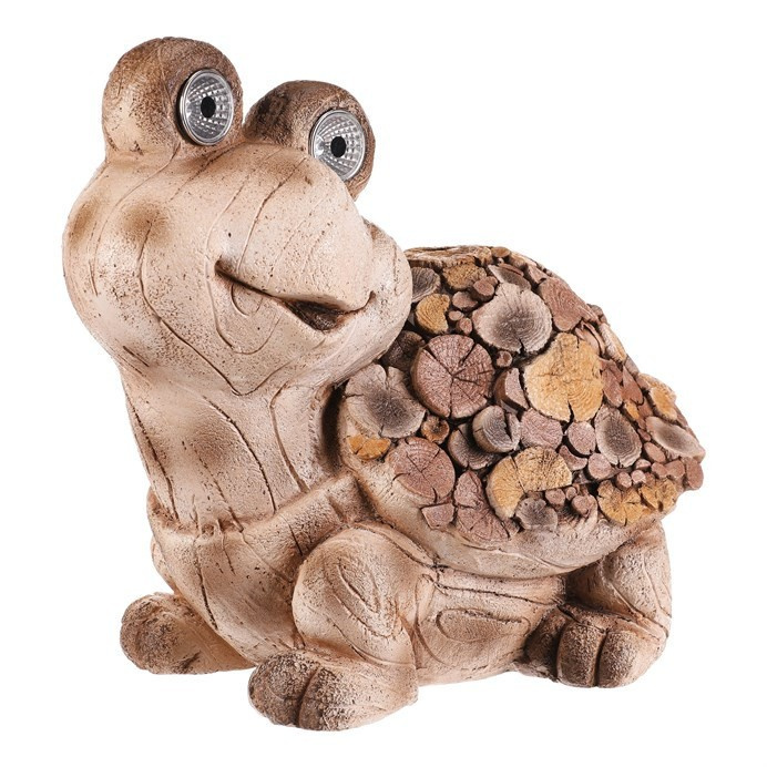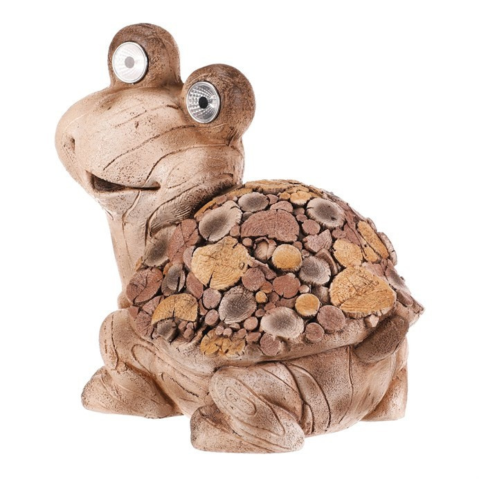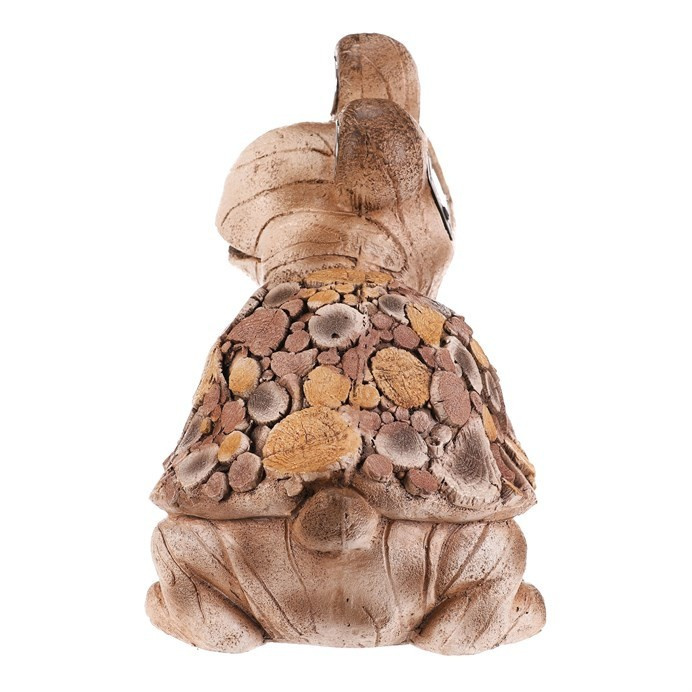 Figurka želvy z magnesia kombinuje přírodní vzhled s dekorativním LED osvětlením, které zvýrazňuje detaily dřevěného vzoru na krunýři. Hnědé provedení s texturou připomínající dřevo dodává dekoraci rustikální charakter a vytváří příjemnou atmosféru v interiéru i exteriéru. LED osvětlení je diskrétně integrováno a přispívá k efektivnímu osvětlení prostoru během večerních hodin. Díky pevnému materiálu je figurka vhodná pro dlouhodobé umístění na zahradě, terase či v obývacím pokoji jako originální doplněk. Kompaktní rozměry umožňují snadné umístění na různé plochy.