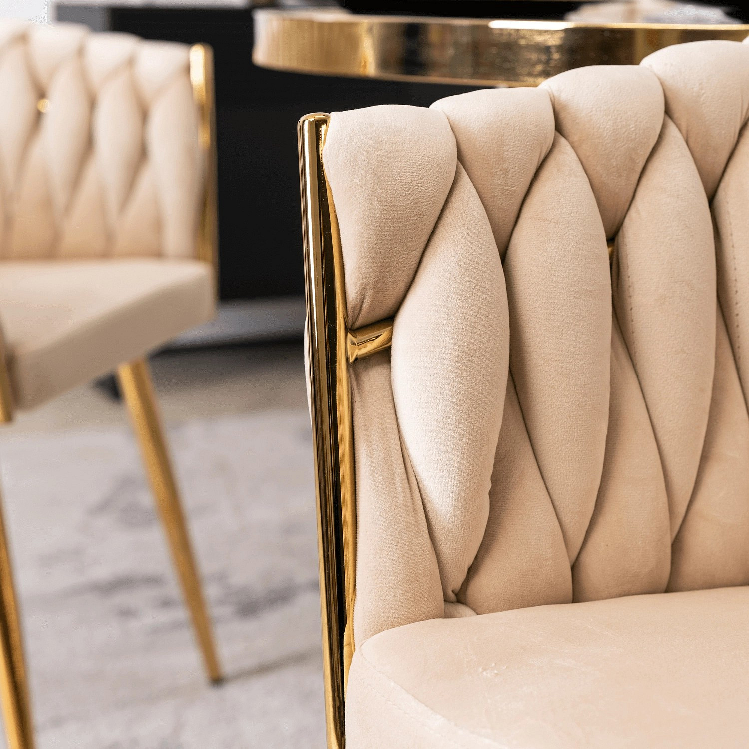 Židle CAPI Krémová Pletená Sametová