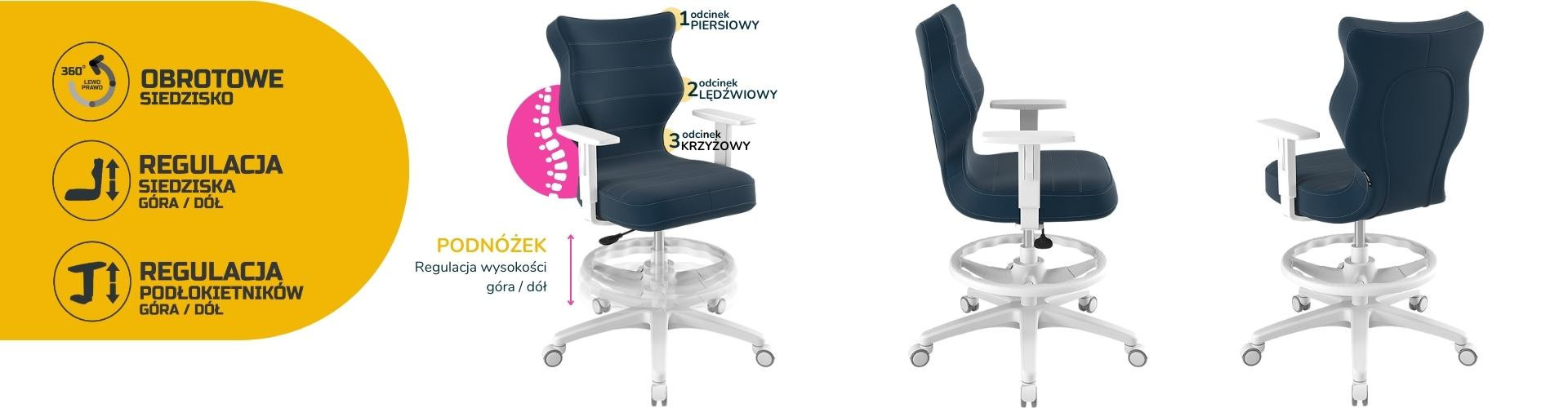 Konkávně-konvexní tvar opěradla zajišťuje správné nastavení páteře a poskytuje uživateli maximální úlevu pro páteř. Vypouklá část sedáku v úrovni bederní oblasti umožňuje správnou polohu nohou a hýždí a ponechává je v jejich přirozené poloze. Dobrá židle pečuje o hrudní, bederní a křížovou oblast.
