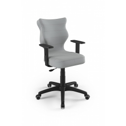 Židle Duo na černých komponentech je kus nábytku, jehož parametry zajišťují pohodlí a komfort. Tento výrobek byl navržen a vyroben v Polsku, což zaručuje ergonomii, vysokou kvalitu zpracování a použití bezpečných materiálů při jeho výrobě. K dispozici je ve velikostech 5 a 6. Díky promyšlenému profilování zajišťuje čalouněná židle správné držení těla, které je při dlouhém sezení velmi důležité pro zdraví.