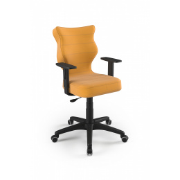 Židle Duo na černých komponentech je kus nábytku, jehož parametry zajišťují pohodlí a komfort. Tento výrobek byl navržen a vyroben v Polsku, což zaručuje ergonomii, vysokou kvalitu zpracování a použití bezpečných materiálů při jeho výrobě. K dispozici je ve velikostech 5 a 6. Díky promyšlenému profilování zajišťuje čalouněná židle správné držení těla, které je při dlouhém sezení velmi důležité pro zdraví.