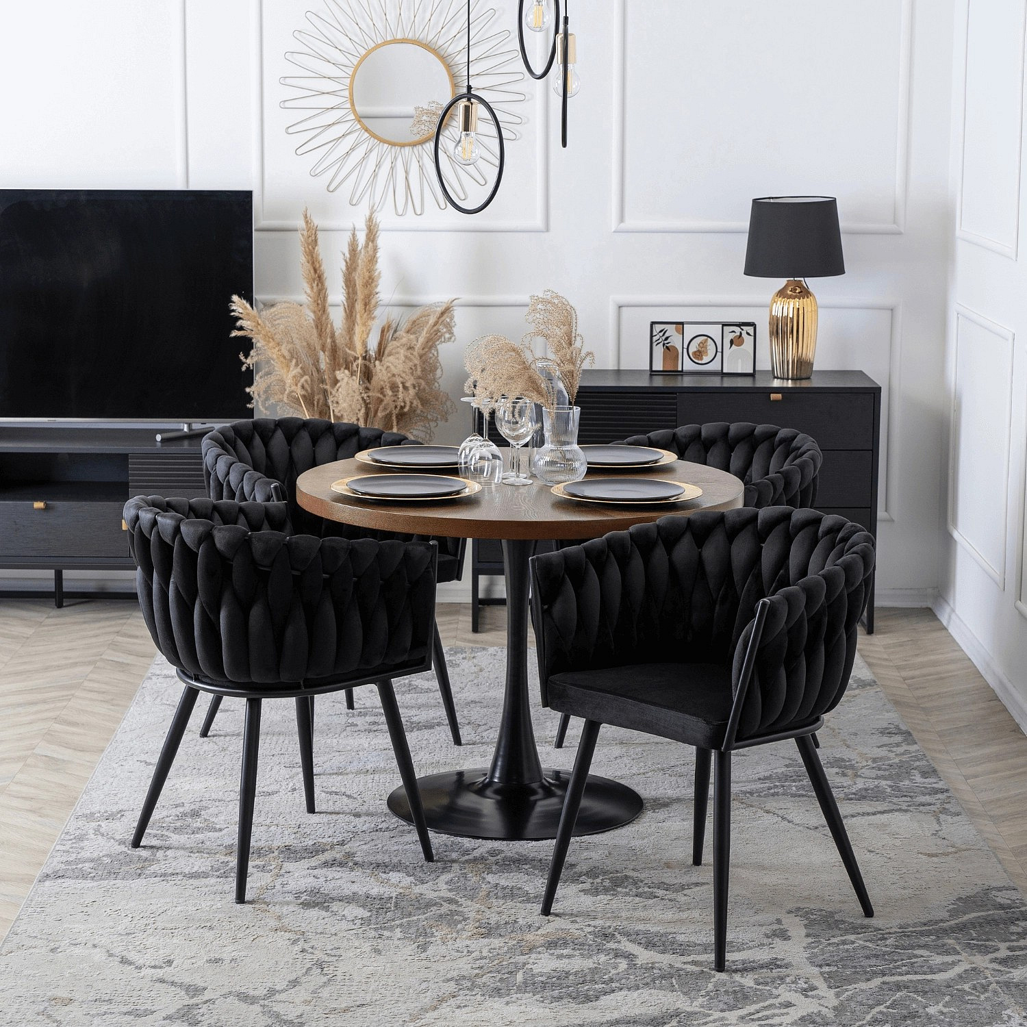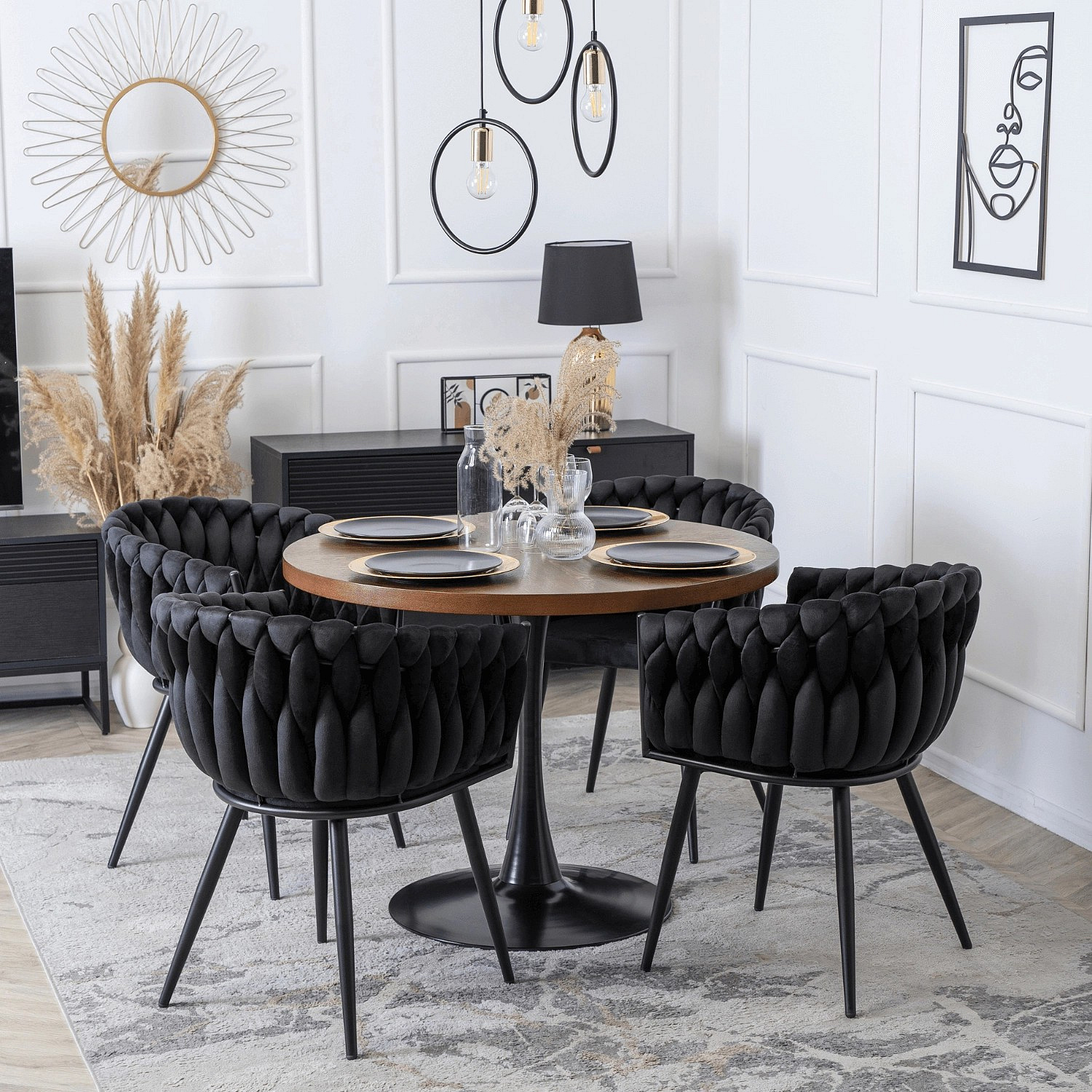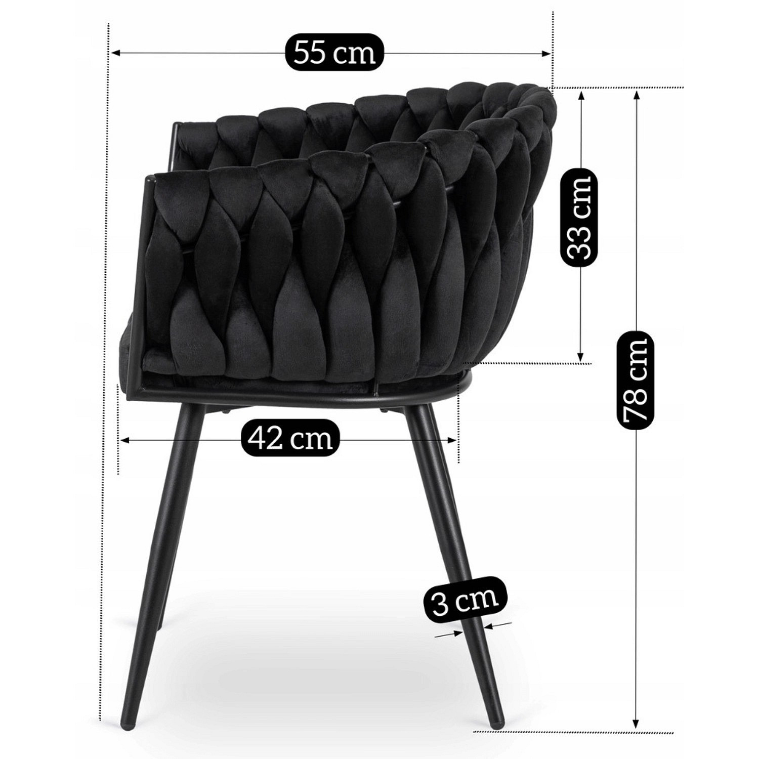 Židle ELENA Černá Pletená Sametová