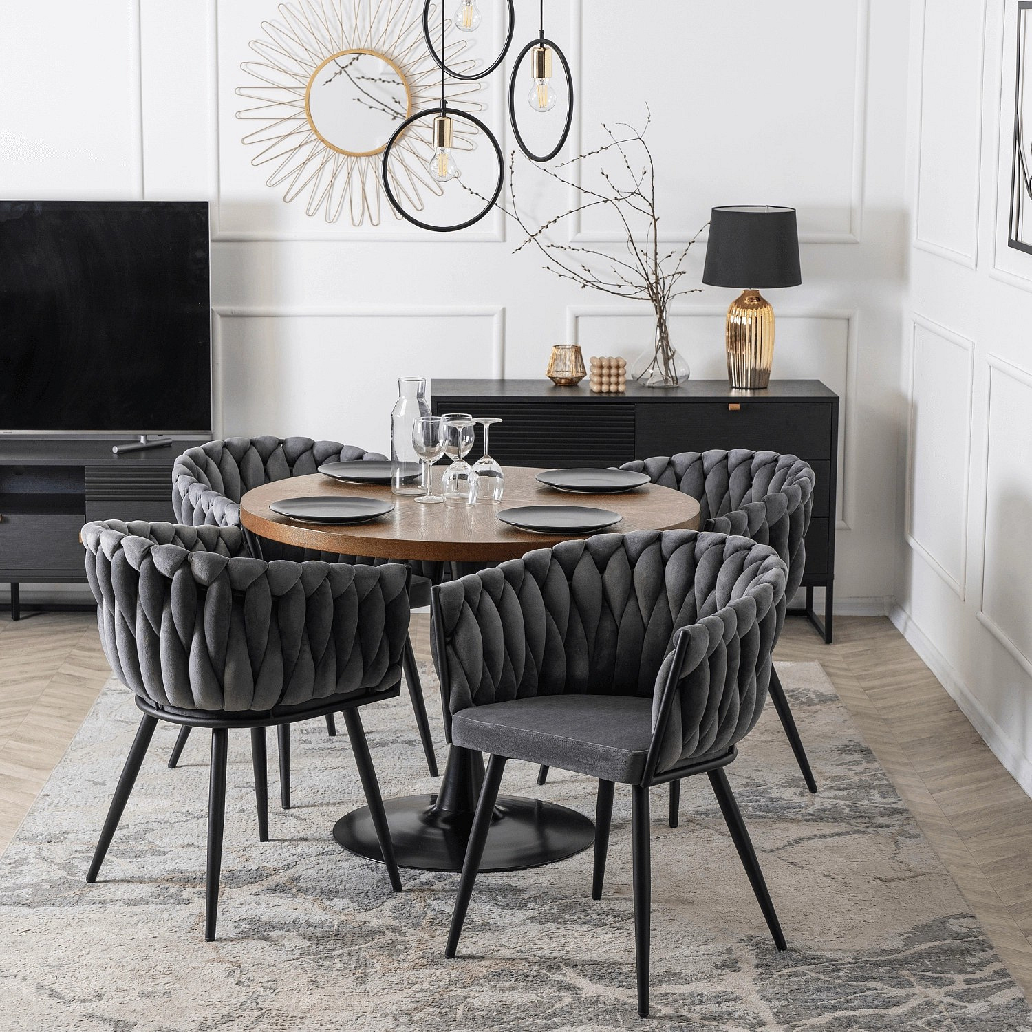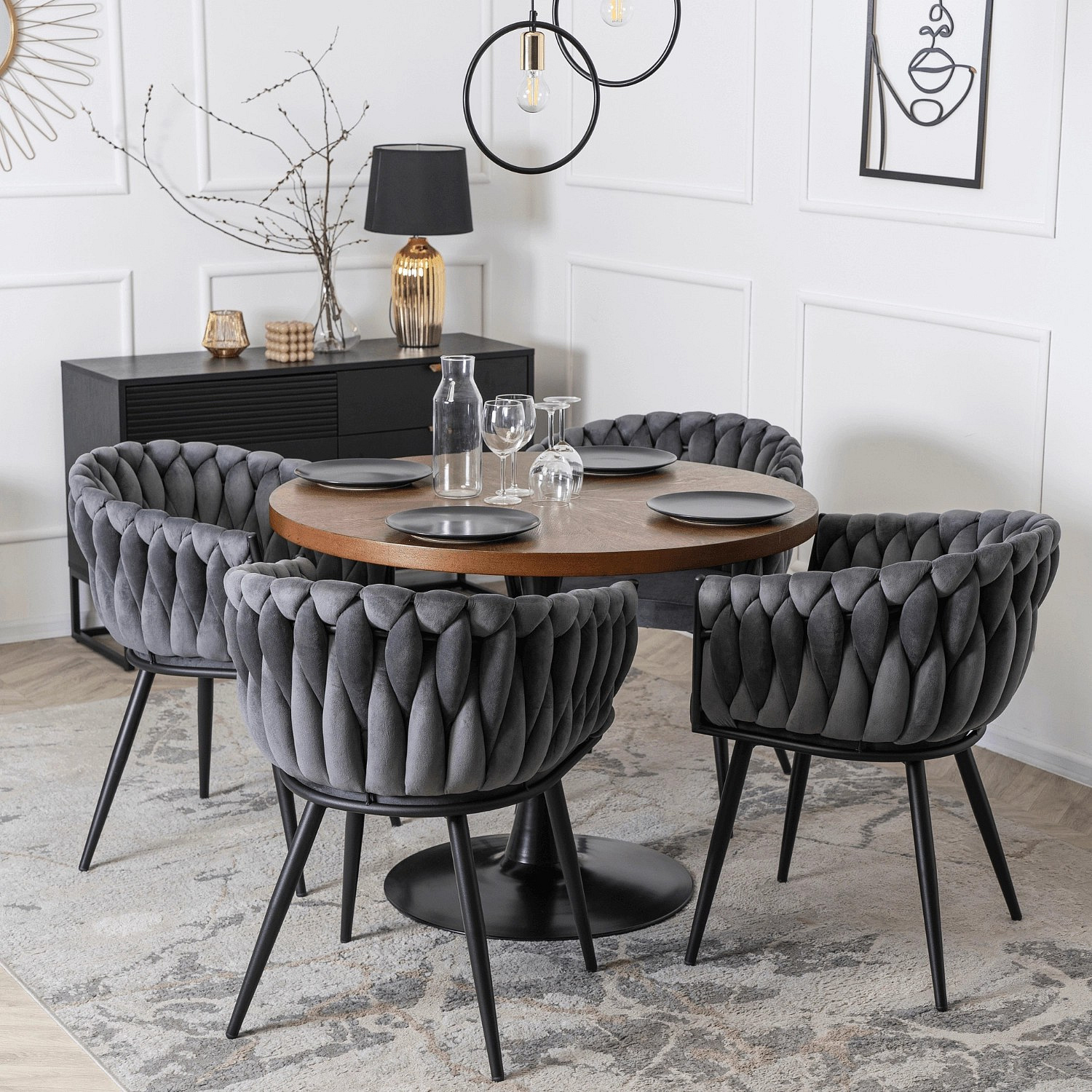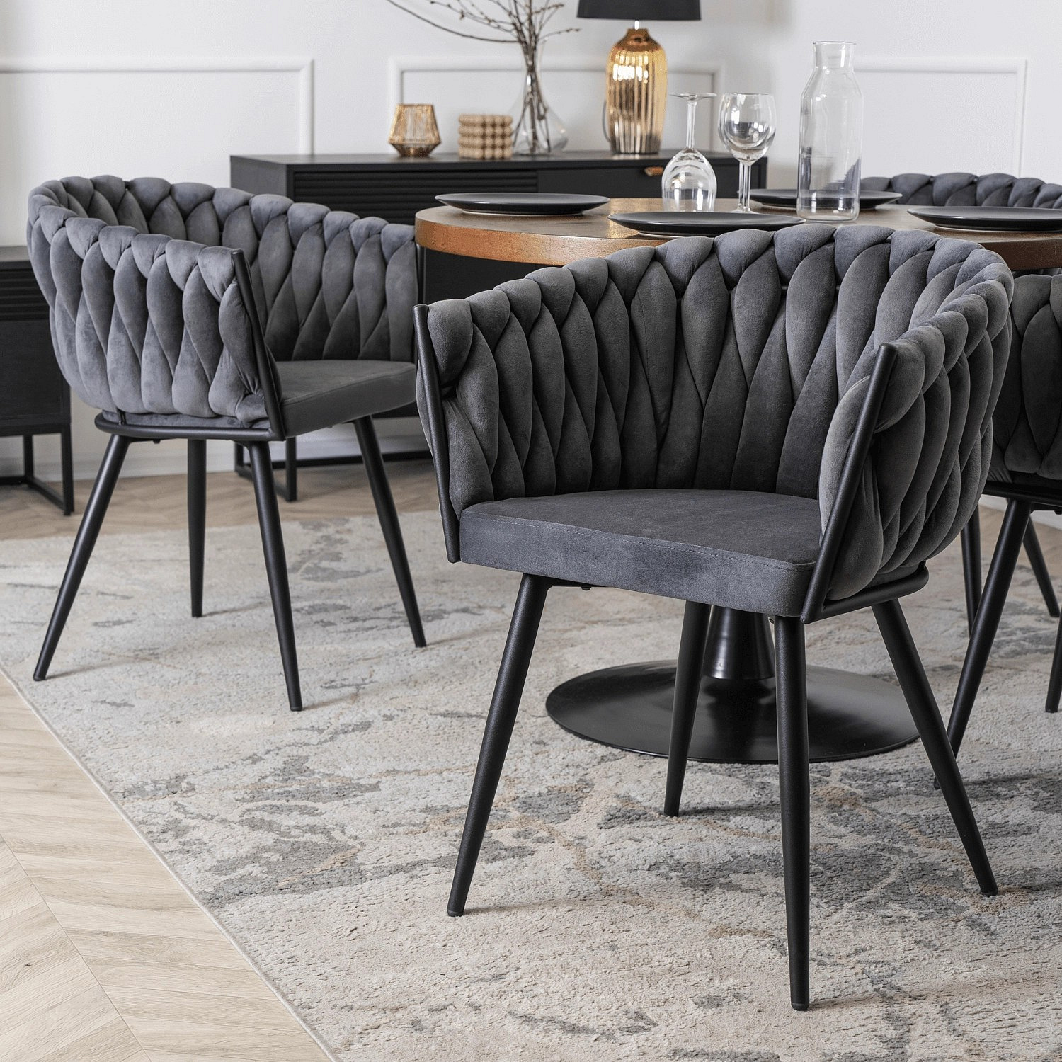 Židle ELENA Šedá Pletená Sametová