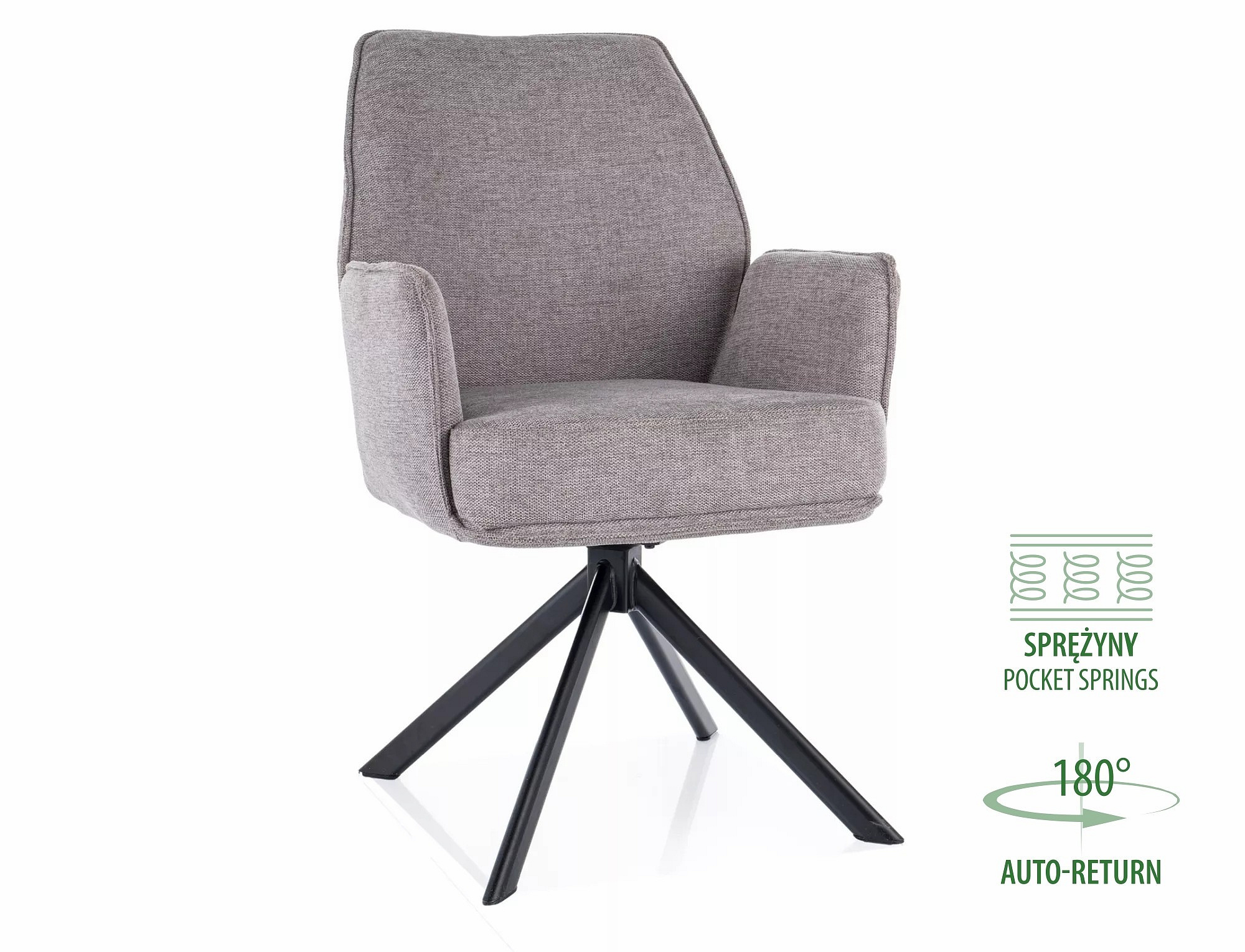 Jídelní otočná židle HUGO BREGO s pružinovým sedákem, Šedá 07/Černá