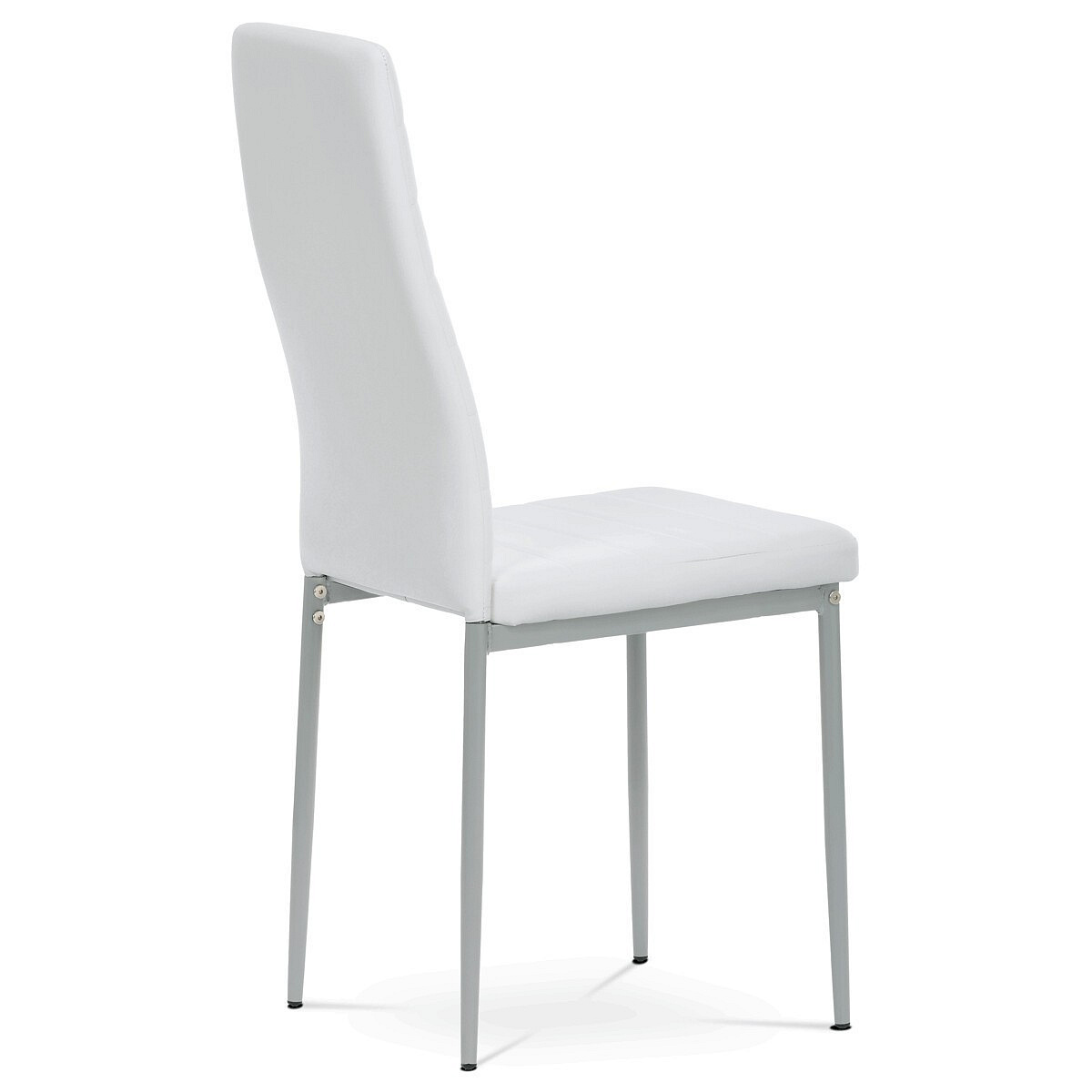 Tato jídelní židle je dokonalým přídavkem do vaší moderně zařízené kuchyně či jídelny. Prémiová bílá ekokůže dotváří exkluzivní vzhled a zároveň zajišťuje pohodlí při každodenním posezení. Ekologická kůže je snadno udržovatelná a odolná vůči poškrábání, což ji činí ideální volbou pro rodiny s dětmi nebo domácnosti s mazlíčky. Šedé kovové nohy dodávají židli elegantní vzhled a zajišťují stabilitu na jakém koliv povrchu. Nosnost jídelní židle činí 120 kg.