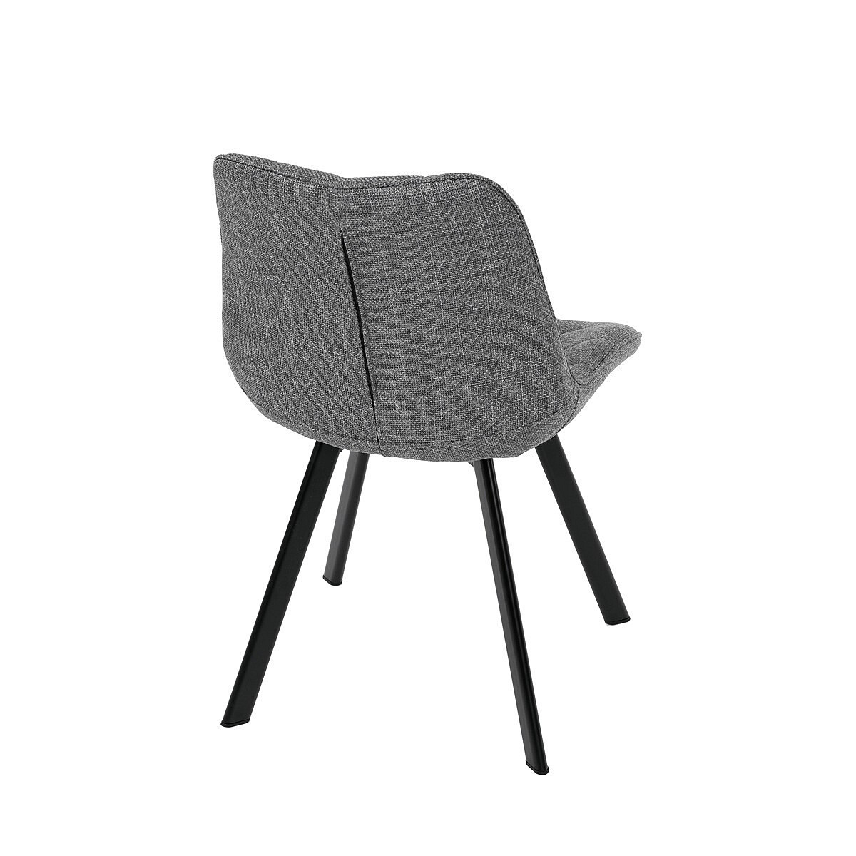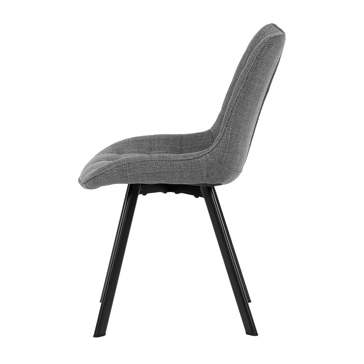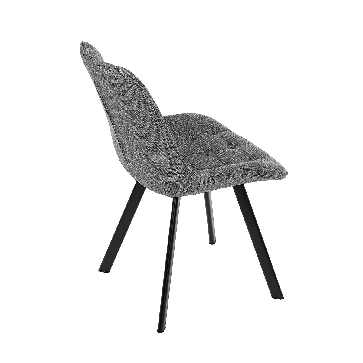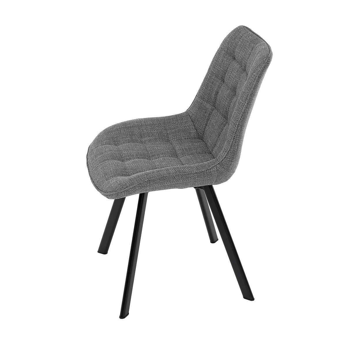 Židle je vyrobena s důrazem na detail. Je čalouněna kvalitní šedou látkou, která je měkká na dotek a odolná proti opotřebení. Ergonomický tvar a polstrování zajišťují komfort i při delším sezení. Židle má 4 kovové nohy s černým povrchem, které poskytují stabilitu a trvanlivost. Nohy jsou mírně skloněné pro lepší rovnováhu a moderní vzhled.