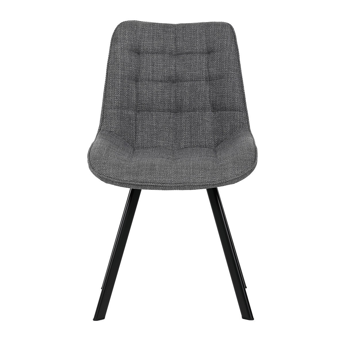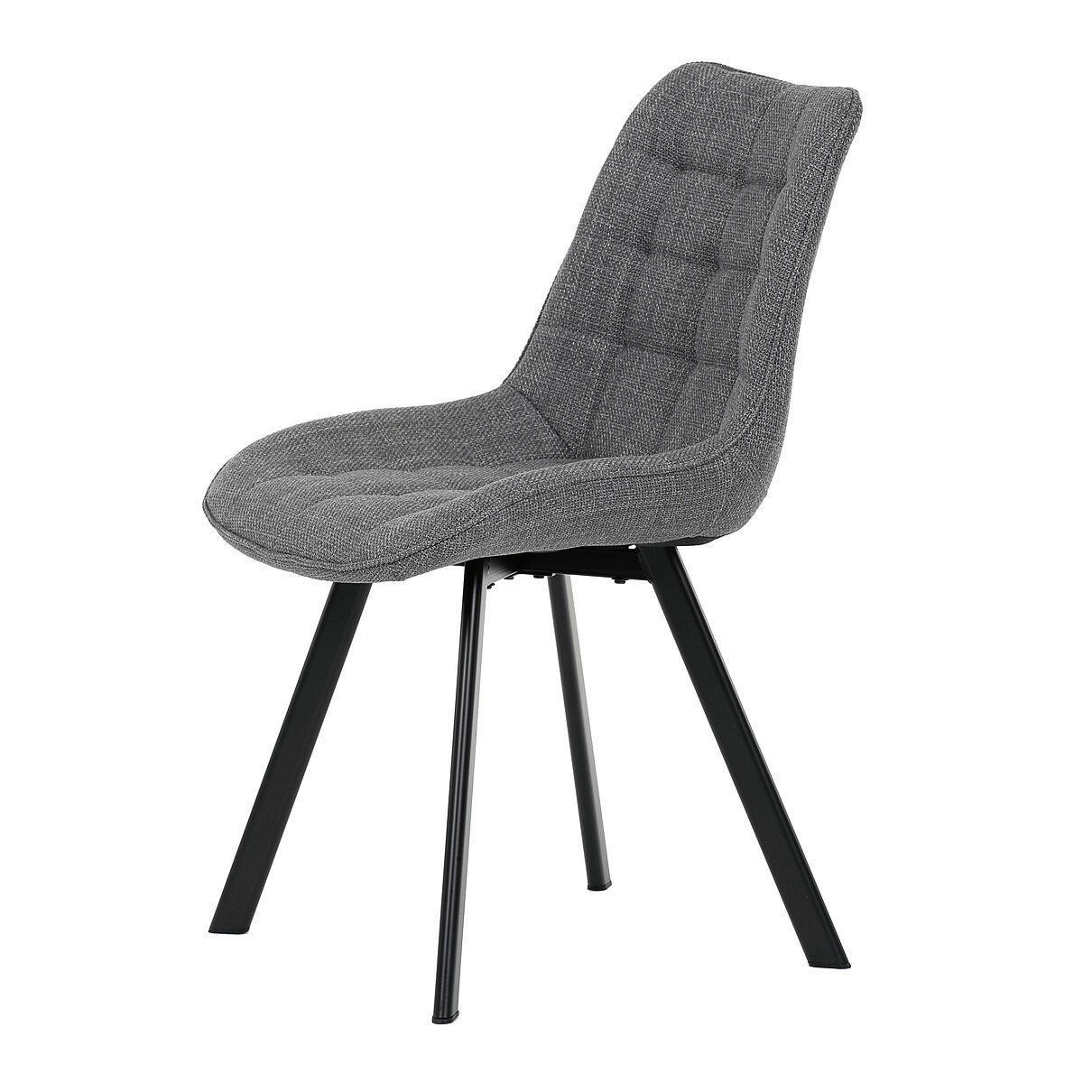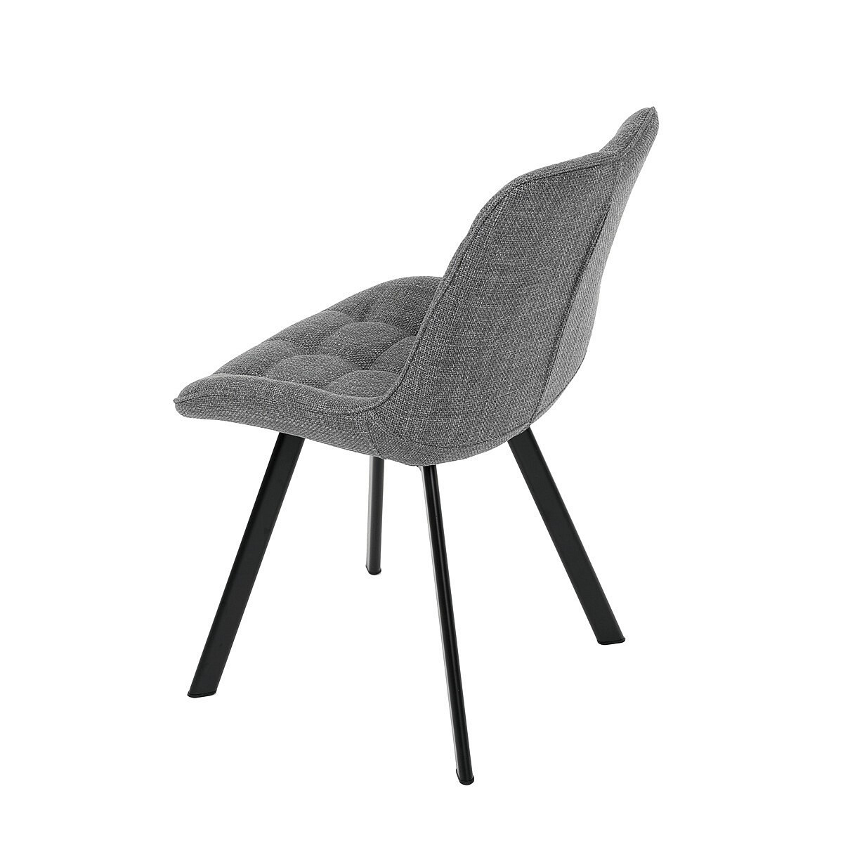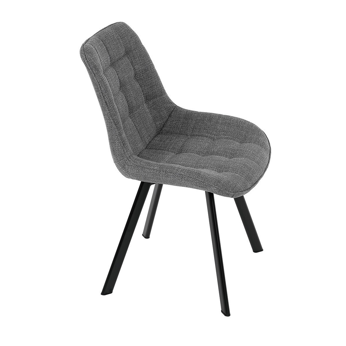 Židle je vyrobena s důrazem na detail. Je čalouněna kvalitní šedou látkou, která je měkká na dotek a odolná proti opotřebení. Ergonomický tvar a polstrování zajišťují komfort i při delším sezení. Židle má 4 kovové nohy s černým povrchem, které poskytují stabilitu a trvanlivost. Nohy jsou mírně skloněné pro lepší rovnováhu a moderní vzhled.