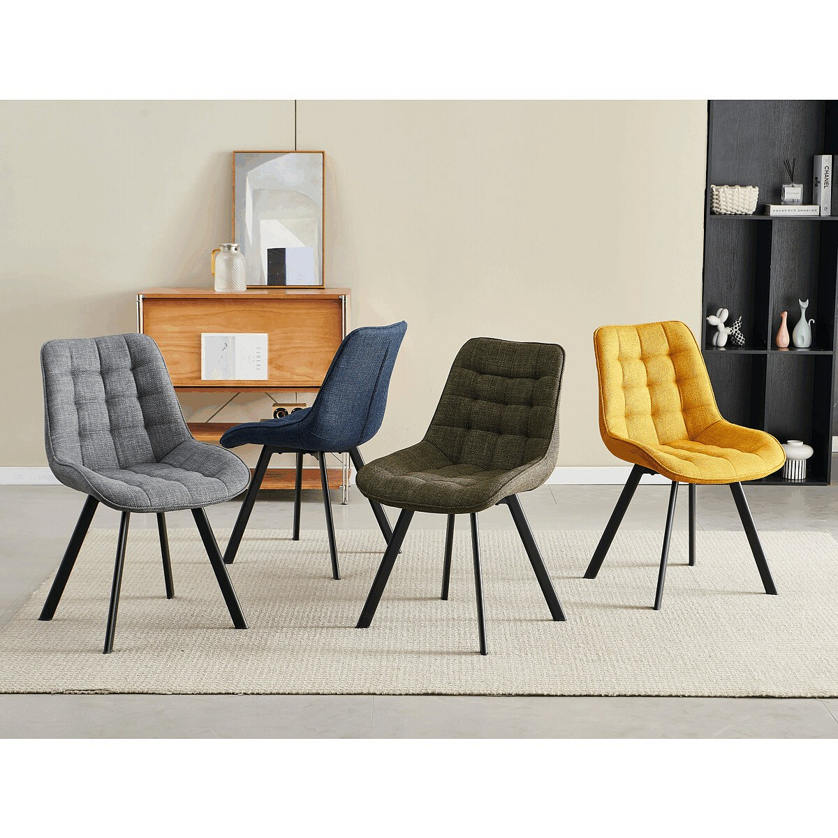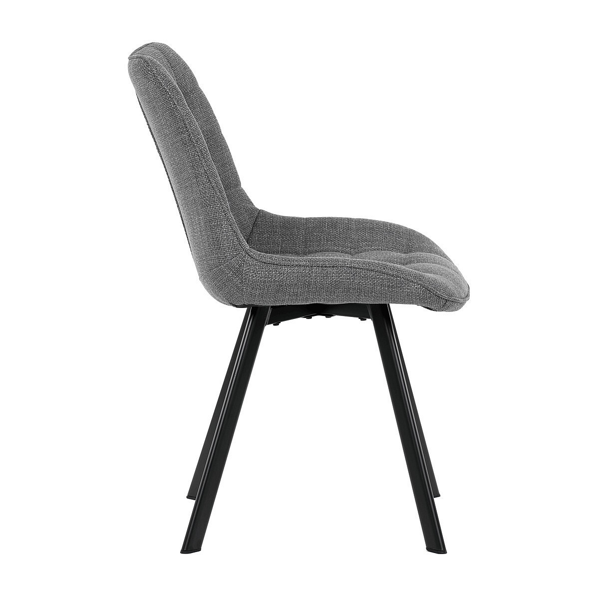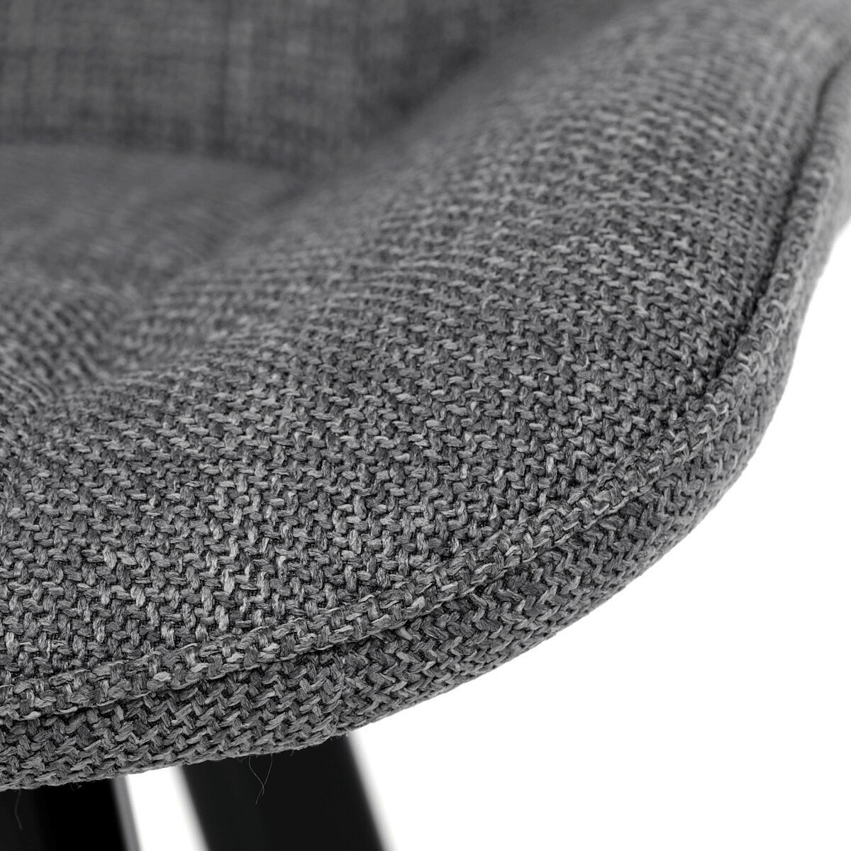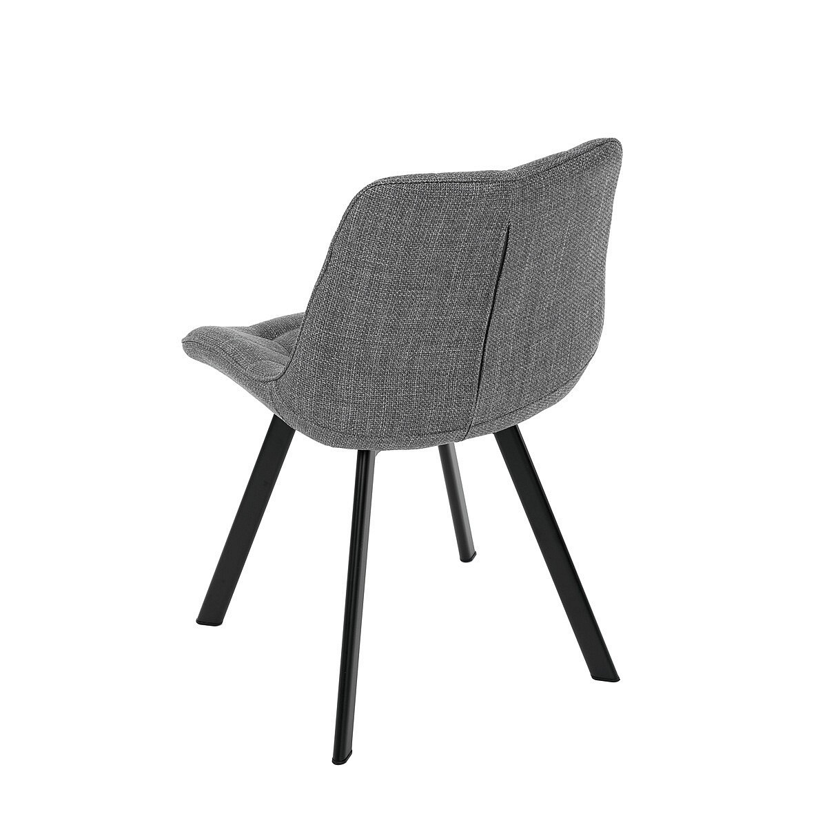 Židle je vyrobena s důrazem na detail. Je čalouněna kvalitní šedou látkou, která je měkká na dotek a odolná proti opotřebení. Ergonomický tvar a polstrování zajišťují komfort i při delším sezení. Židle má 4 kovové nohy s černým povrchem, které poskytují stabilitu a trvanlivost. Nohy jsou mírně skloněné pro lepší rovnováhu a moderní vzhled.