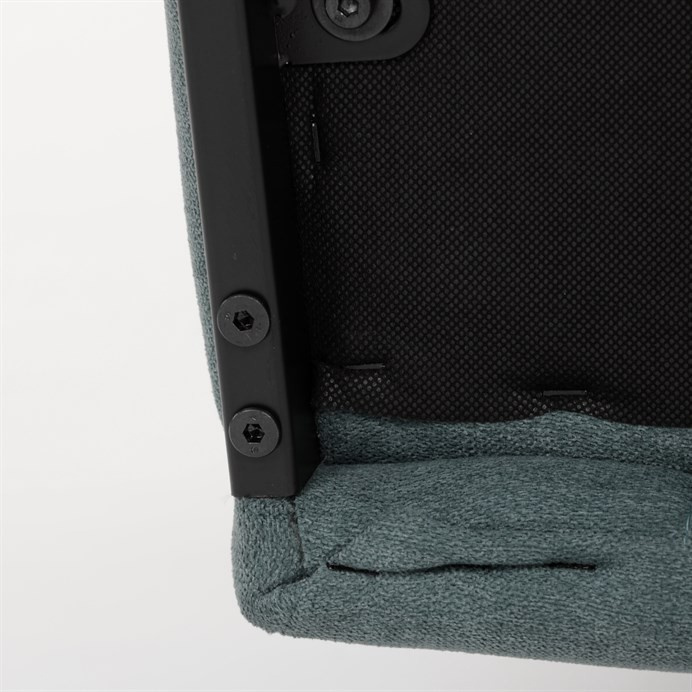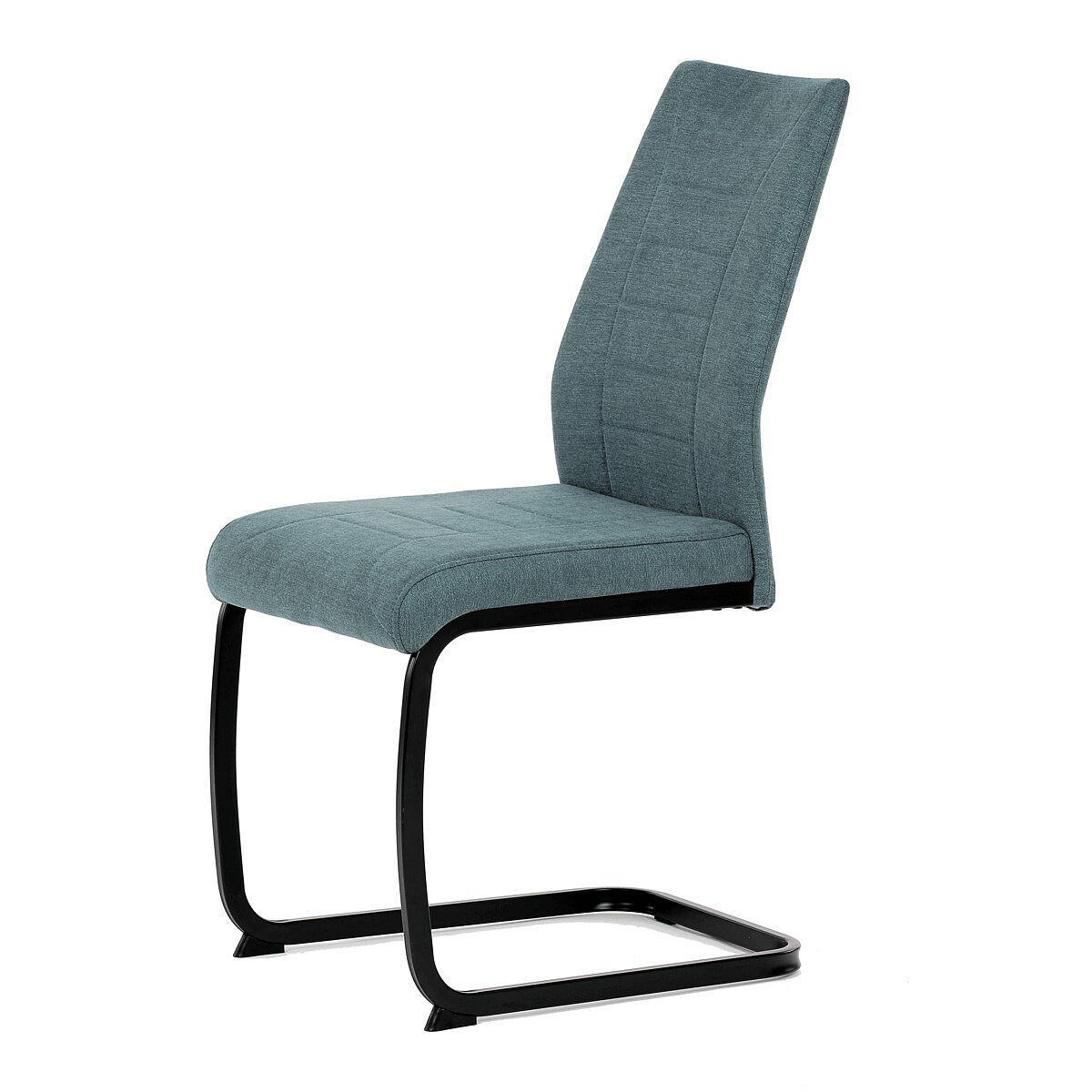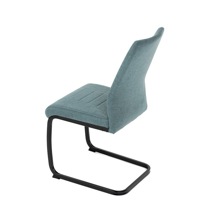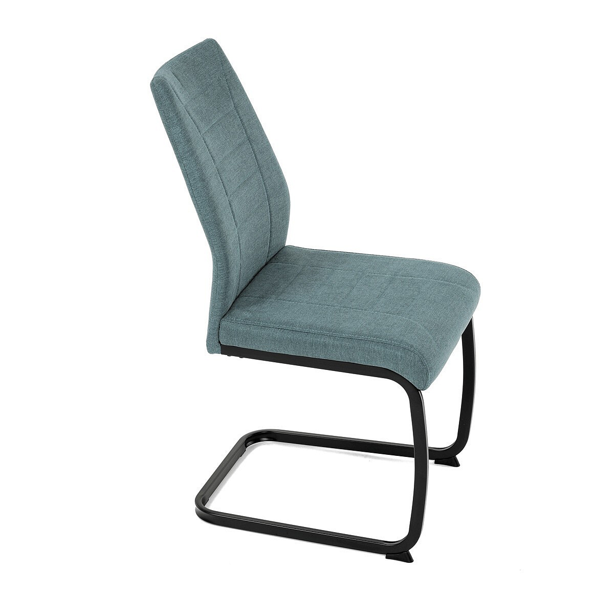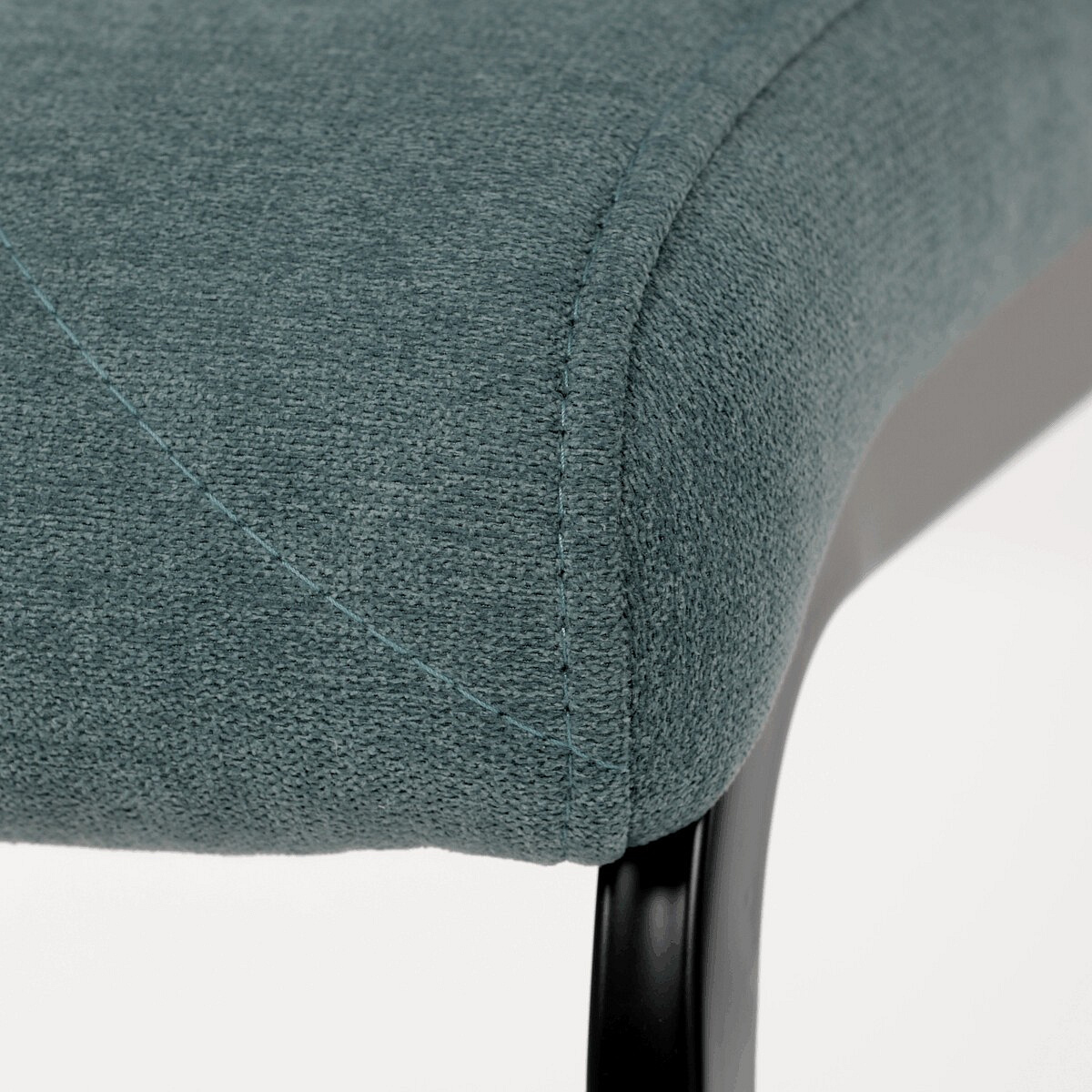 Židle je čalouněná jemnou, tmavě zelenkavou látkou, která je měkká na dotek a odolná proti opotřebení. Ergonomický tvar a polstrované sedadlo spolu s pohupovou podnoží v černé barvě zajišťují díky lehkému pružení komfort při sezení. Ozdobné prošívání na opěradle dodává židli elegantní vzhled.