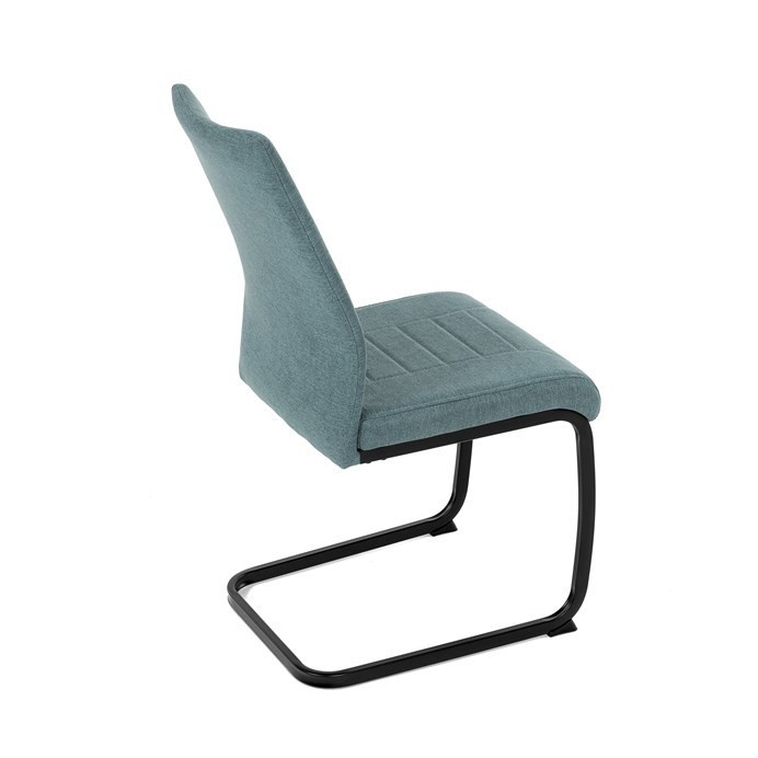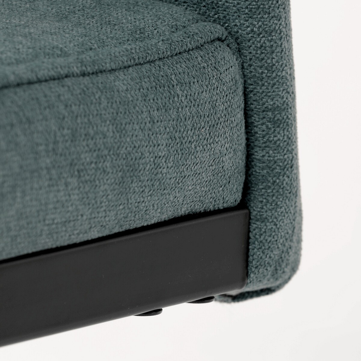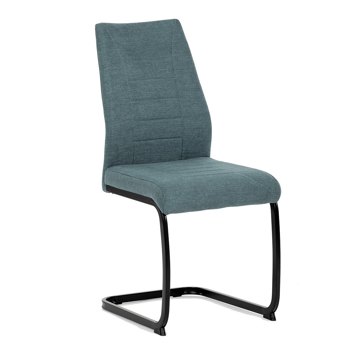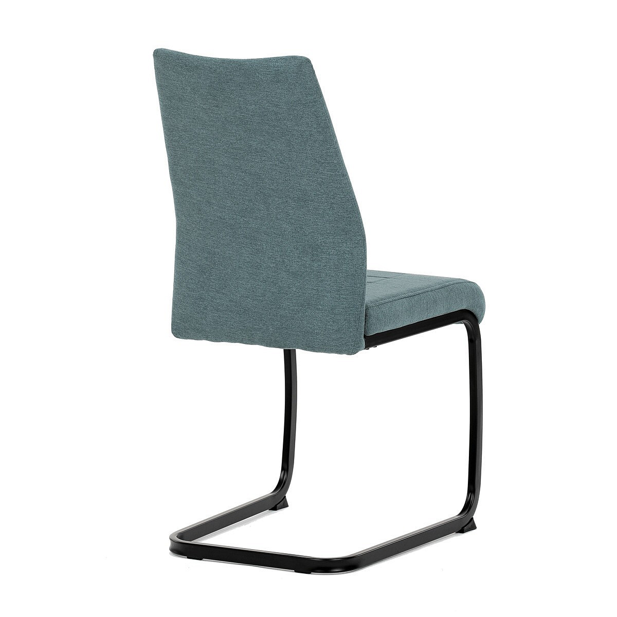 Židle je čalouněná jemnou, tmavě zelenkavou látkou, která je měkká na dotek a odolná proti opotřebení. Ergonomický tvar a polstrované sedadlo spolu s pohupovou podnoží v černé barvě zajišťují díky lehkému pružení komfort při sezení. Ozdobné prošívání na opěradle dodává židli elegantní vzhled.