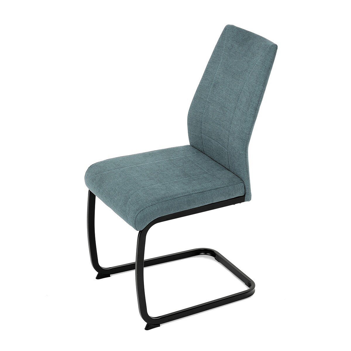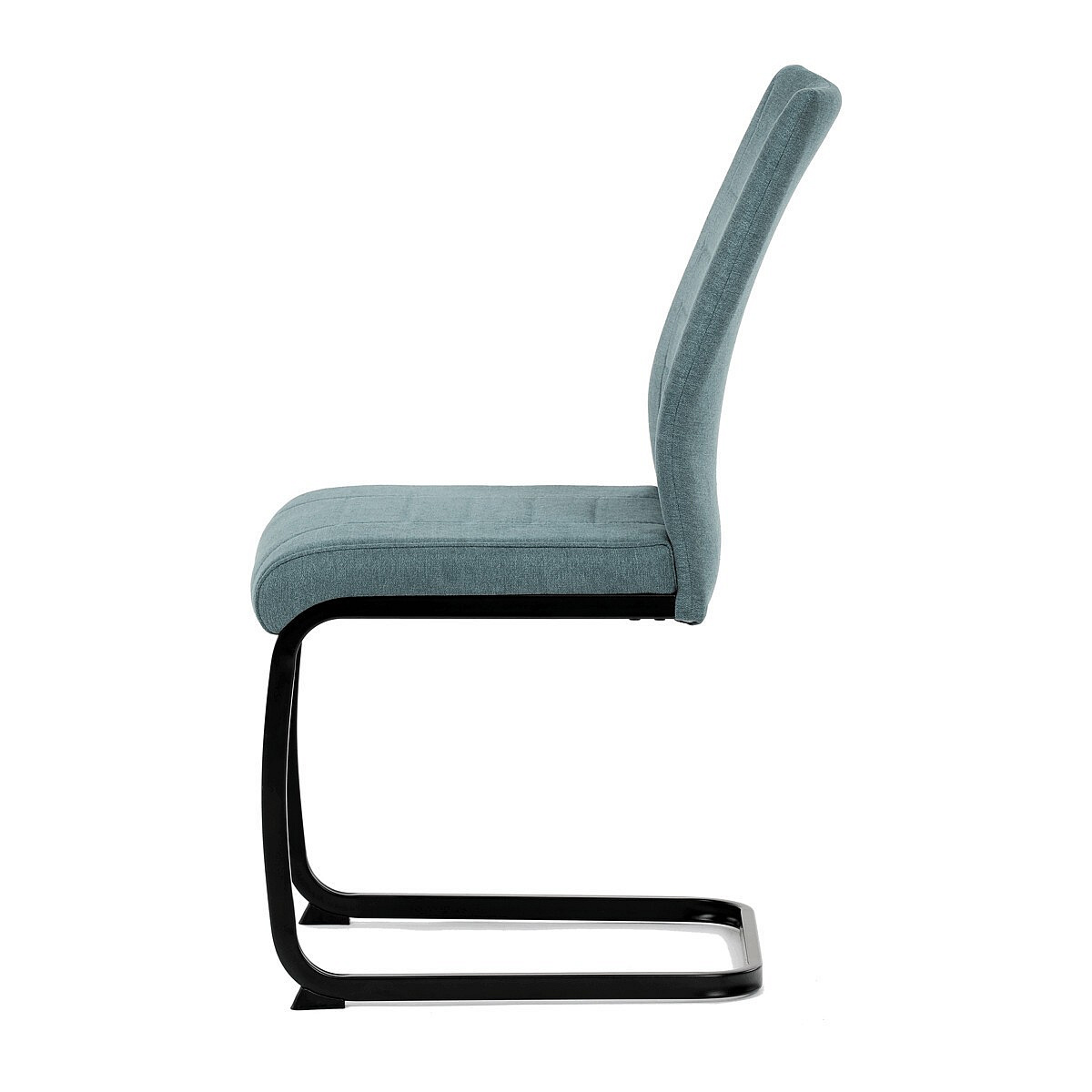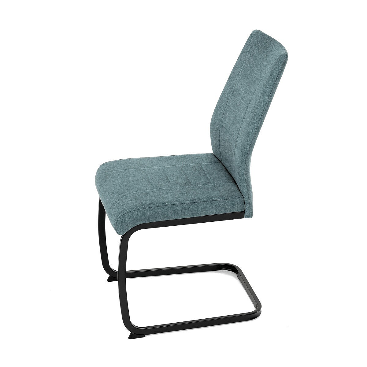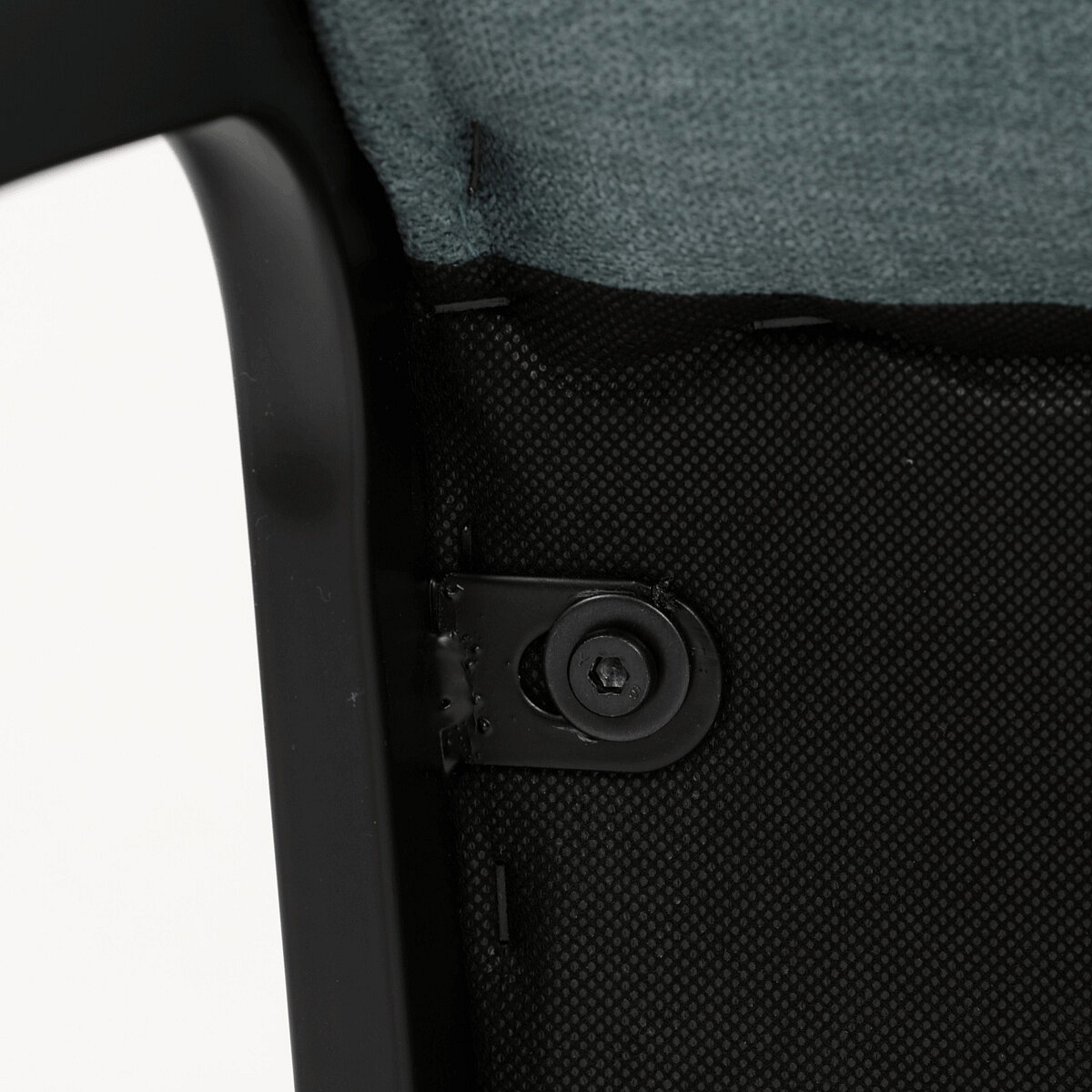 Židle je čalouněná jemnou, tmavě zelenkavou látkou, která je měkká na dotek a odolná proti opotřebení. Ergonomický tvar a polstrované sedadlo spolu s pohupovou podnoží v černé barvě zajišťují díky lehkému pružení komfort při sezení. Ozdobné prošívání na opěradle dodává židli elegantní vzhled.