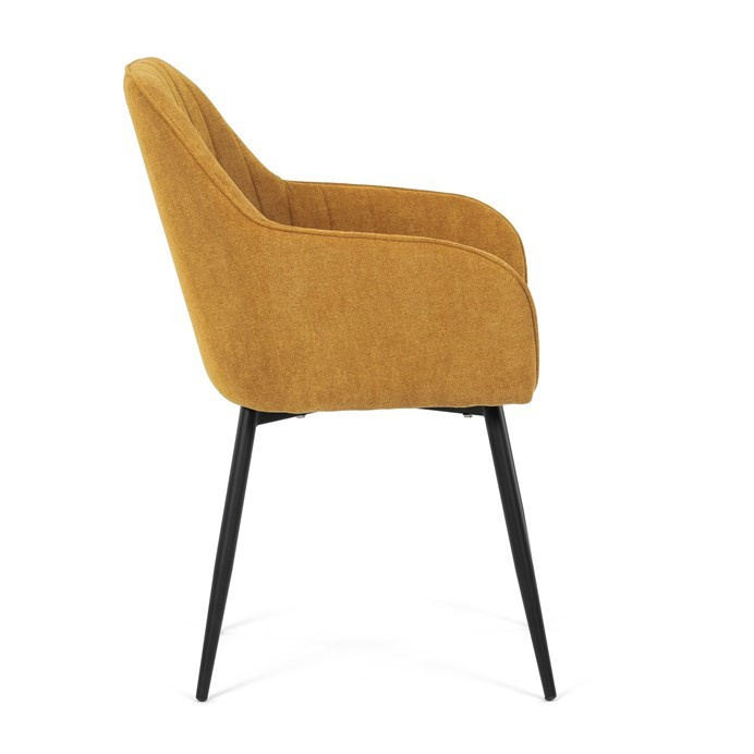 Stylová jídelní židle od značky Autronic zaujme moderním průmyslovým designem, který skvěle zapadne do každého interiéru. Je čalouněná hladkou žlutou látkou, která je nejen trvanlivá, ale také příjemná na dotek. Komfort při sezení zajistí pohodlné područky a měkká pěnová výplň. Pevná kovová konstrukce černé barvy s s nohami kruhového profilu dodává stabilitu a elegantní vzhled. Tato jídelní židle je ideální volbou pro moderní jídelny, kde se snoubí pohodlí s estetikou a dlouhou životností.