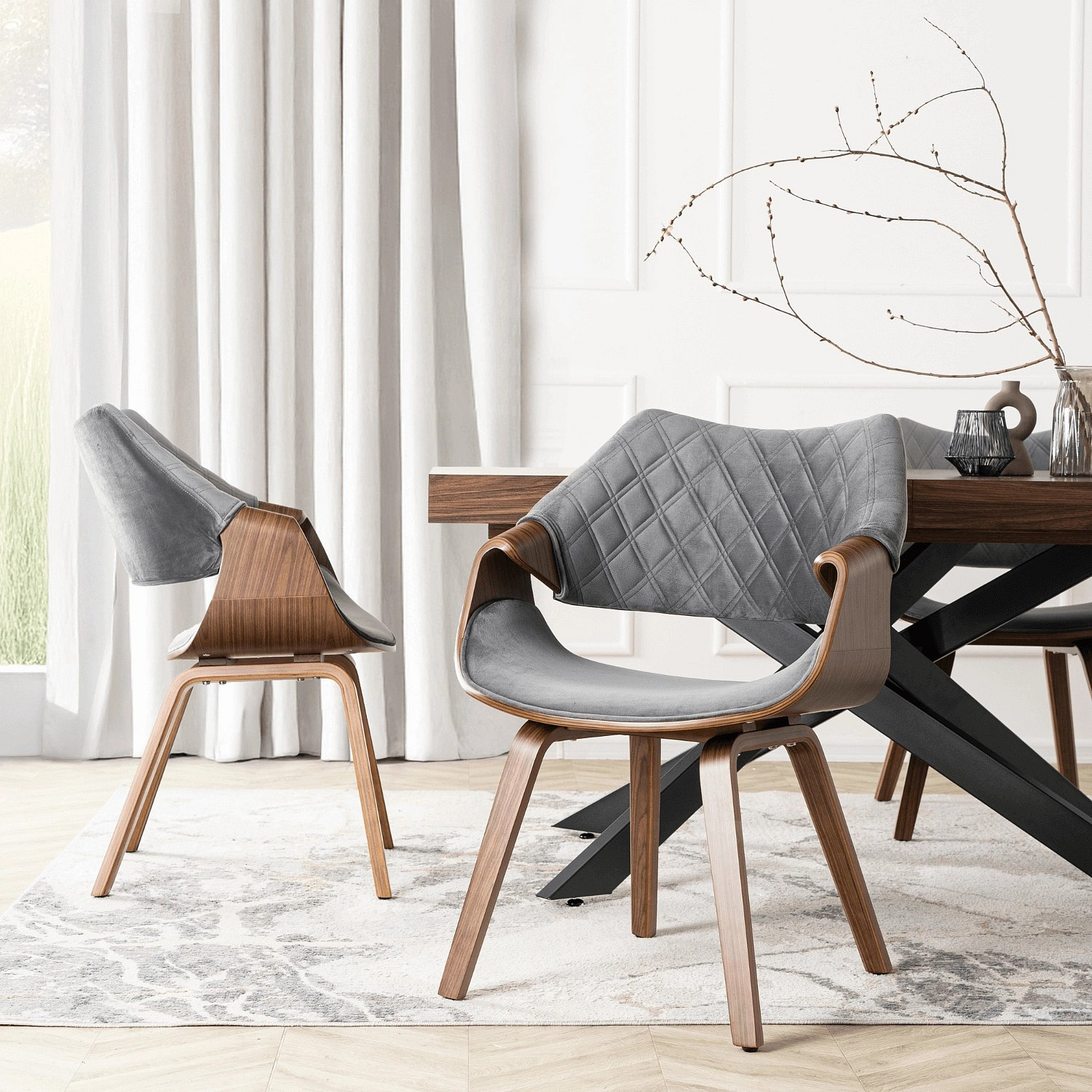 Židle LUISE Šedá/Ořech Sametová
