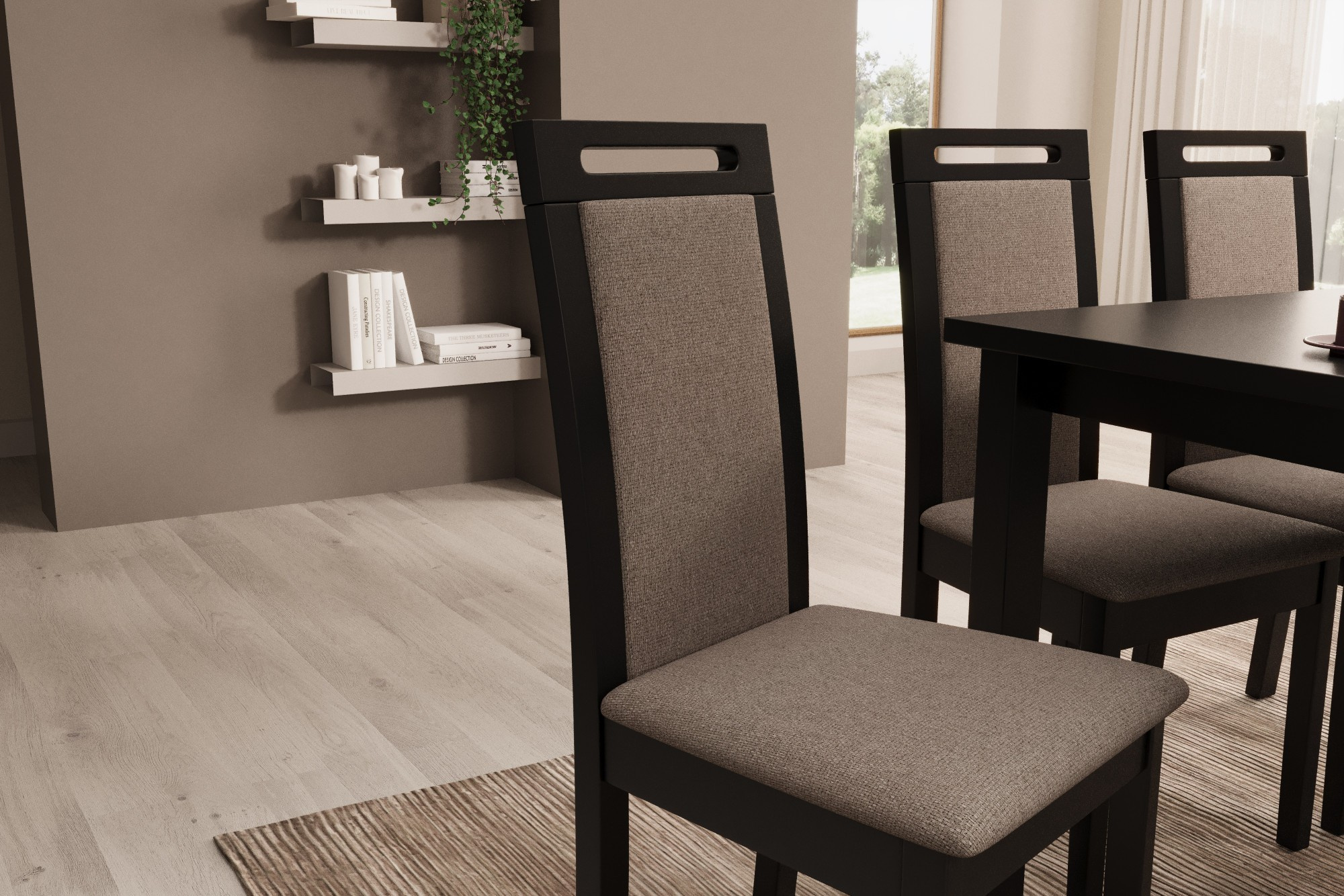 Židle Nola VI je kombinací moderního designu a funkčnosti, která se skvěle hodí do každého interiéru – od minimalistické jídelny po elegantní kancelářský prostor. Charakteristickým prvkem modelu je efektně vyříznutá rukojeť v horní části opěradla, která dodává celku jedinečný vzhled a usnadňuje přemísťování nábytku. Čalouněné sedadlo a opěradlo zajišťují vysoký komfort používání, zatímco pevná konstrukce zaručuje stabilitu a dlouhou životnost. Nola VI je ideální volbou pro ty, kteří hledají nábytek, který bude jak praktický, tak dekorativní. Díky své univerzální formě se židle harmonicky hodí k různým stylům aranžmá, tvoříc jemný, ale výrazný doplněk prostoru.
