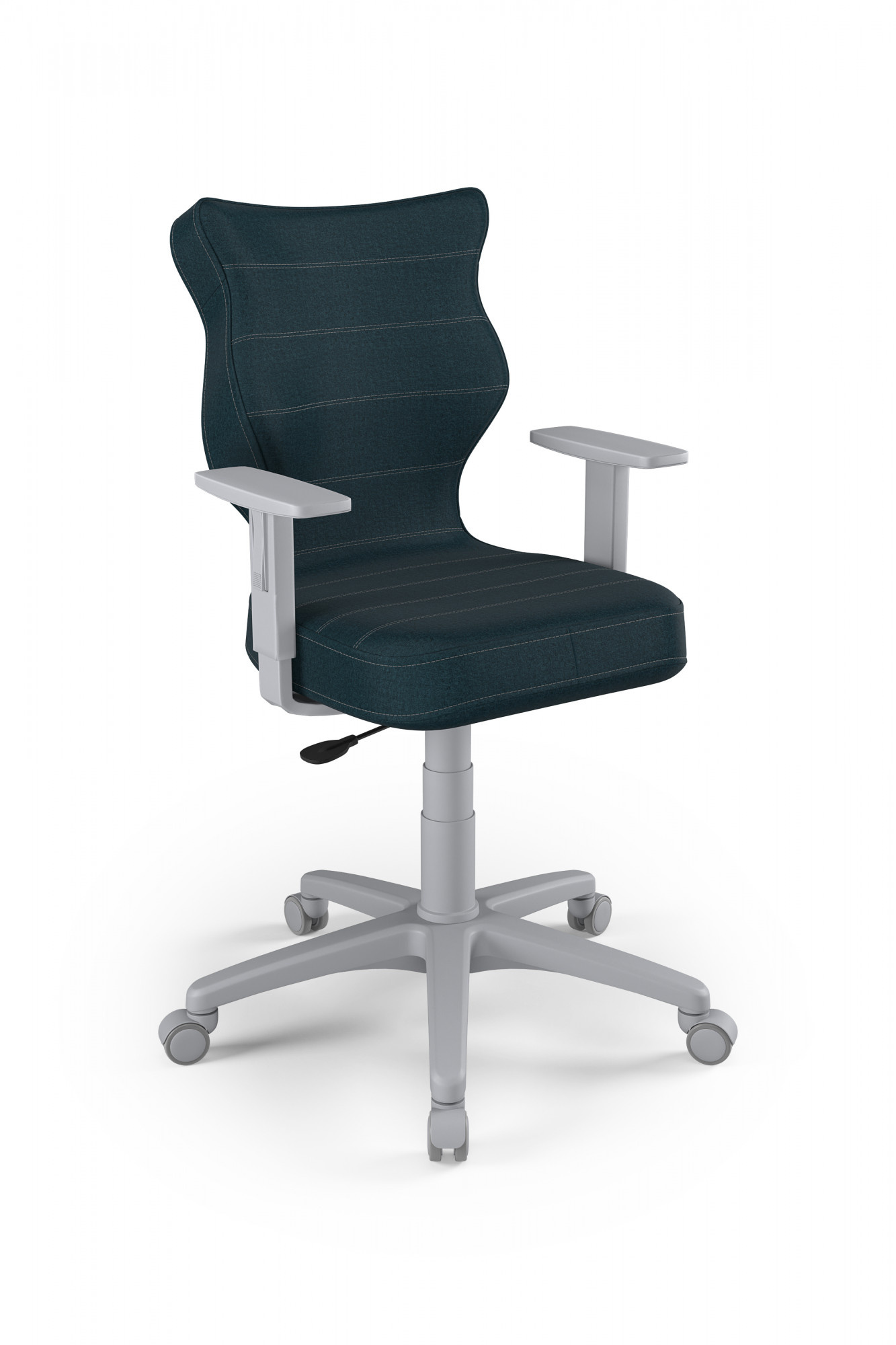 Židle Duo na šedých komponentech je produkt určený zejména pro mladé lidi. Robustní zpracování s pohodlným sedákem i područkami znamená, že ani několikahodinové sezení na něm nezpůsobuje žádné problémy. Ergonomický model židle Duo je navržen tak, aby udržoval správné držení těla dítěte při sezení. Šedá otočná židle pro mladé se dodává v pěti druzích látek a ve třech barvách komponentů, z nichž si můžete vybrat. Dostupné barvy komponent jsou šedá, černá a bílá.