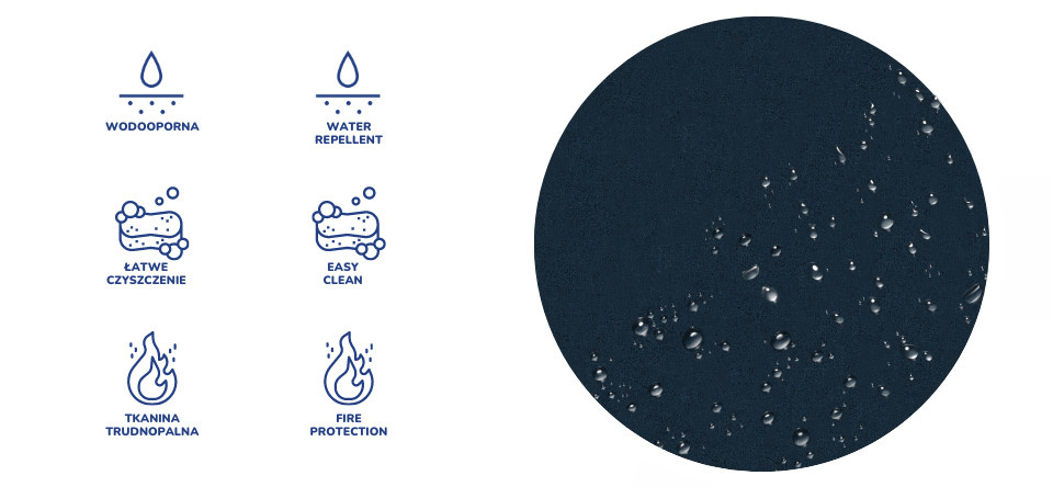 VODĚODOLNOST - tkanina MONOLITH je potažena speciální ochrannou vrstvou, která vytváří hydrofobní vrstvu, která zabraňuje rychlému nasáknutí kapalin. Tím se zabrání okamžitému nasátí vody do tkaniny, což způsobí kondenzaci kapaliny na povrchu tkaniny.