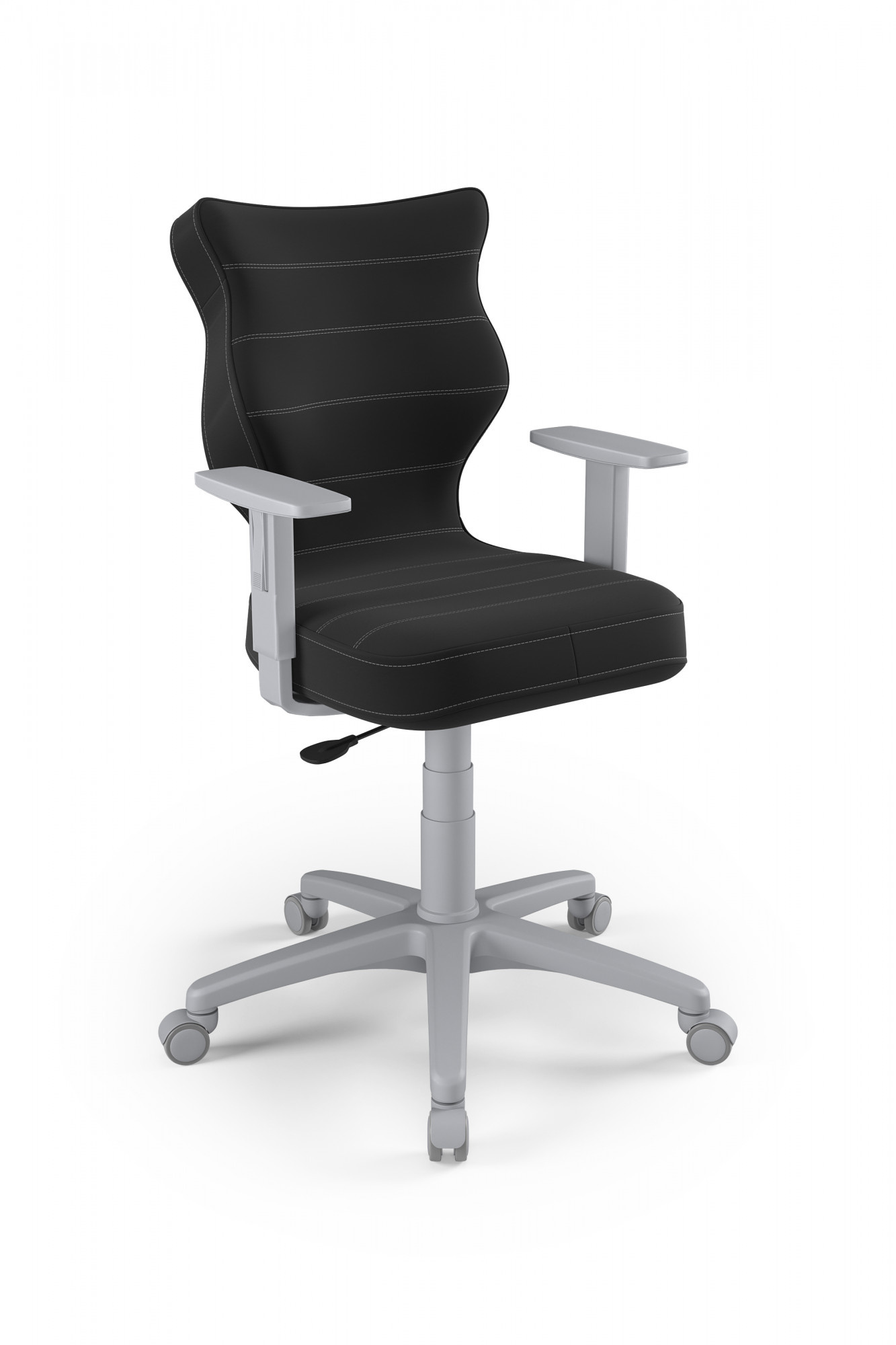 Židle Duo na šedých komponentech je produkt určený zejména pro mladé lidi. Robustní zpracování s pohodlným sedákem i područkami znamená, že ani několikahodinové sezení na něm nezpůsobuje žádné problémy. Ergonomický model židle Duo je navržen tak, aby udržoval správné držení těla dítěte při sezení. Šedá otočná židle pro mladé se dodává v pěti druzích látek a ve třech barvách komponentů, z nichž si můžete vybrat. Dostupné barvy komponent jsou šedá, černá a bílá.