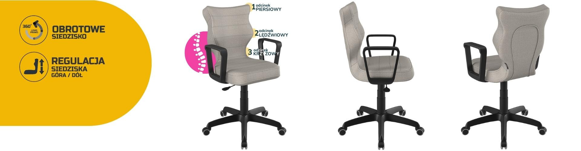 Konkávně-konvexní tvar opěradla zajišťuje správné nastavení páteře a poskytuje uživateli maximální úlevu pro páteř. Vypouklá část sedáku v úrovni bederní oblasti umožňuje správnou polohu nohou a hýždí a ponechává je v jejich přirozené poloze. Dobrá židle pečuje o hrudní, bederní a křížovou oblast.