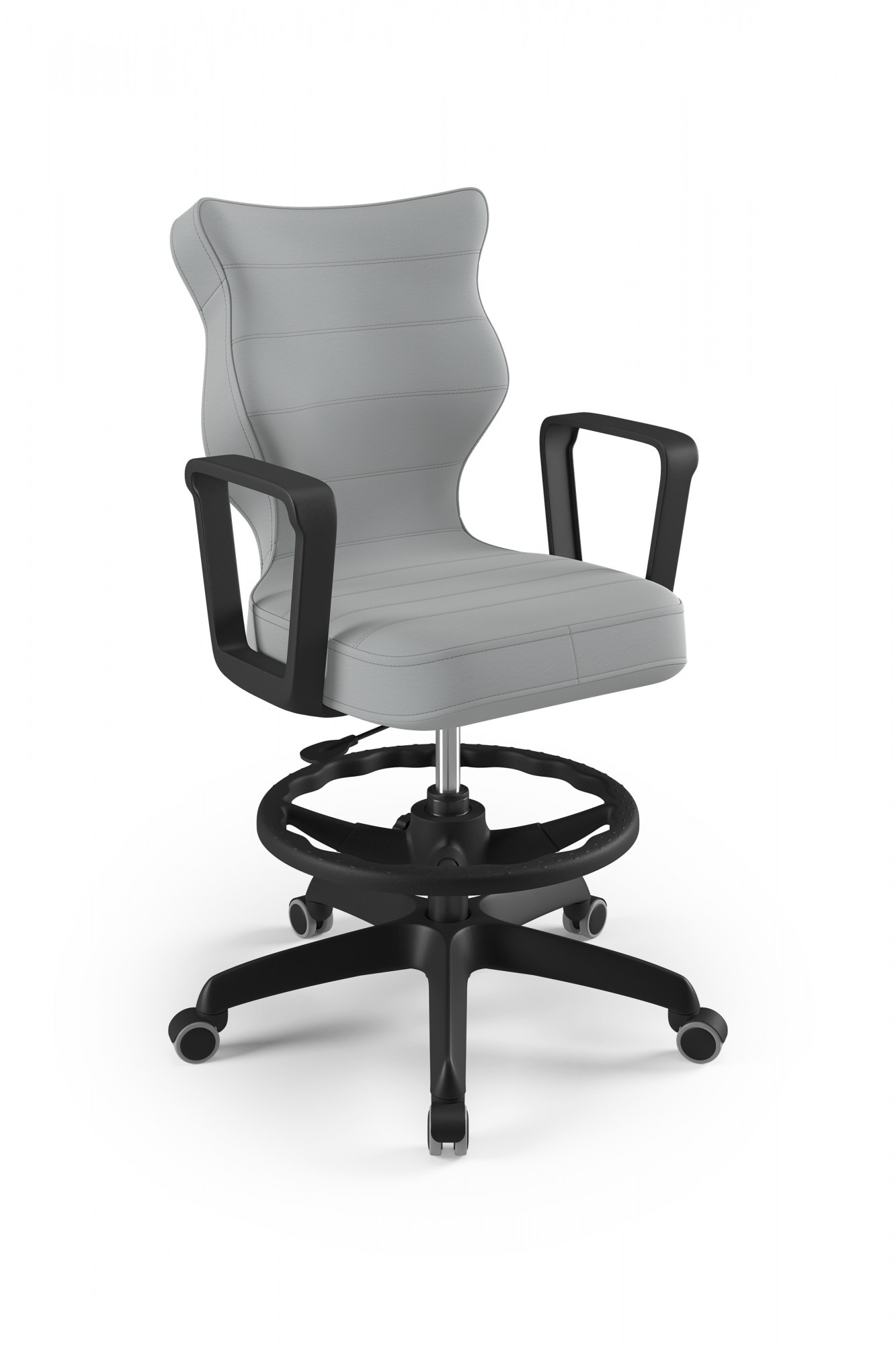 Otočná židle pro teenagery je důležitým kusem nábytku v pokoji každého teenagera. Pro naše zákazníky jsme připravili model Norm, jehož sedadlo je ergonomicky tvarované, díky čemuž uživatel získá maximální pohodlí. Jsme přesvědčeni, že náš výrobek splní vaše očekávání. Čím se židle Norm youth swivel vyznačuje? - Ergonomický sedák z plastu, - pevné područky, rovněž z plastu, v černé barvě, - sedací deska má ocelovou přímou páku, takže židli lze účinně nastavit, - sloupek v podobě plynového zdvihu z oceli a plastu, - podnožka s nastavitelnou výškou, - měkká černá kolečka
