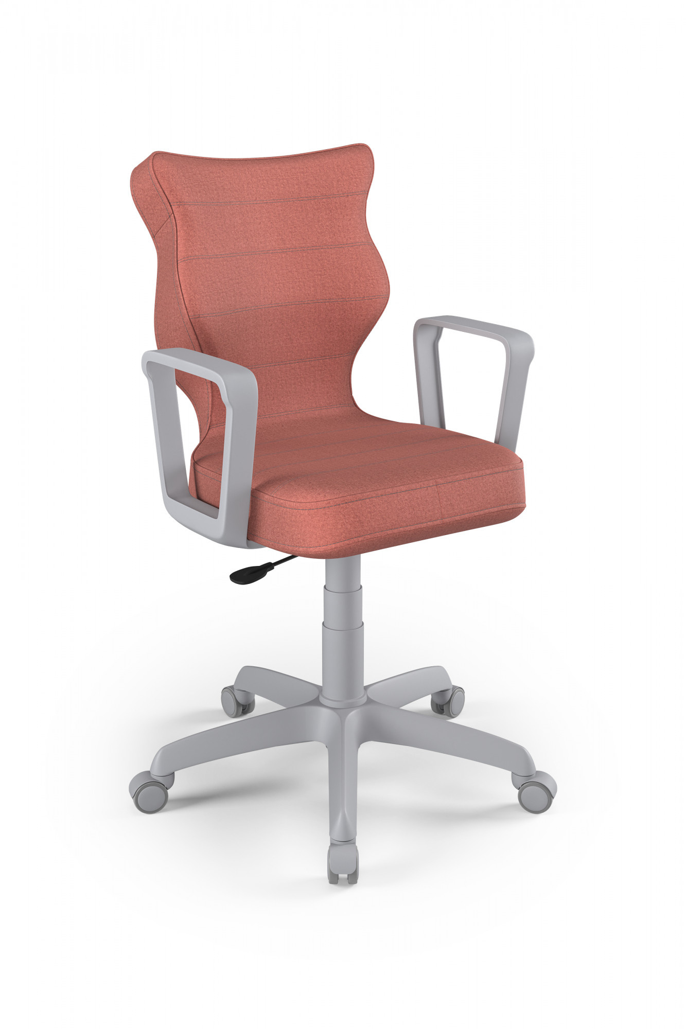 Otočná židle pro teenagery je důležitým kusem nábytku v pokoji každého teenagera. Pro naše zákazníky jsme připravili model Norm, jehož sedadlo je ergonomicky tvarované, díky čemuž uživatel získá maximální pohodlí. Jsme přesvědčeni, že náš výrobek splní vaše očekávání. Čím se židle Norm youth swivel vyznačuje? - Ergonomický sedák z plastu, - pevné područky, rovněž z plastu, v bílé barvě - sedací deska má ocelovou přímou páku, takže židli lze účinně nastavit, - sloupek v podobě plynového zdvihu z oceli a plastu, - teleskopický kryt plynového zdvihu, - měkká šedá kolečka