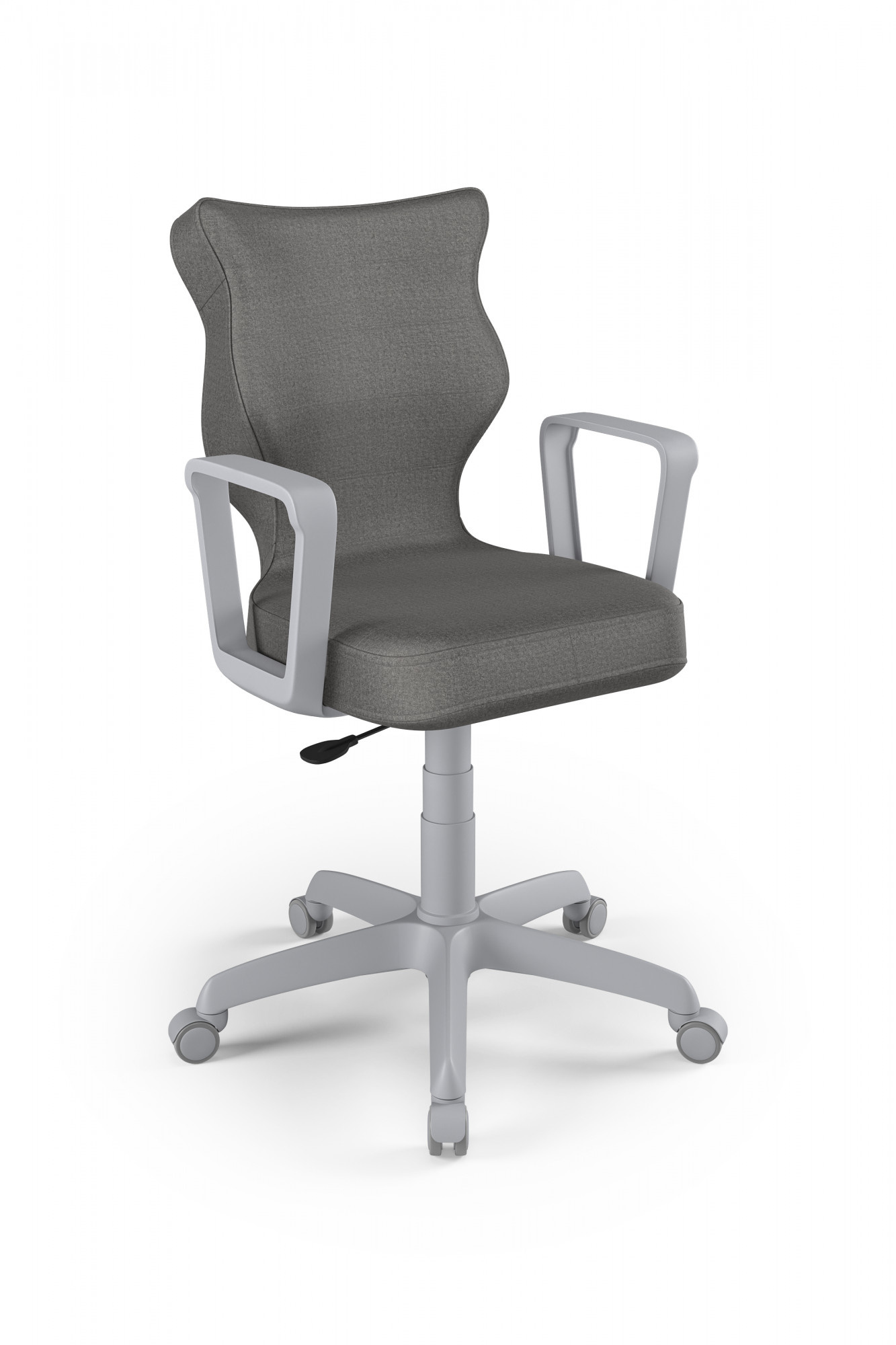 Otočná židle pro teenagery je důležitým kusem nábytku v pokoji každého teenagera. Pro naše zákazníky jsme připravili model Norm, jehož sedadlo je ergonomicky tvarované, díky čemuž uživatel získá maximální pohodlí. Jsme přesvědčeni, že náš výrobek splní vaše očekávání. Čím se židle Norm youth swivel vyznačuje? - Ergonomický sedák z plastu, - pevné područky, rovněž z plastu, v bílé barvě - sedací deska má ocelovou přímou páku, takže židli lze účinně nastavit, - sloupek v podobě plynového zdvihu z oceli a plastu, - teleskopický kryt plynového zdvihu, - měkká šedá kolečka