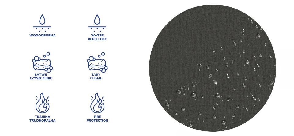VODĚODOLNOST - tkanina MONOLITH je potažena speciální ochrannou vrstvou, která vytváří hydrofobní vrstvu, která zabraňuje rychlému nasáknutí kapalin. Tím se zabrání okamžitému nasátí vody do tkaniny, což způsobí kondenzaci kapaliny na povrchu tkaniny.