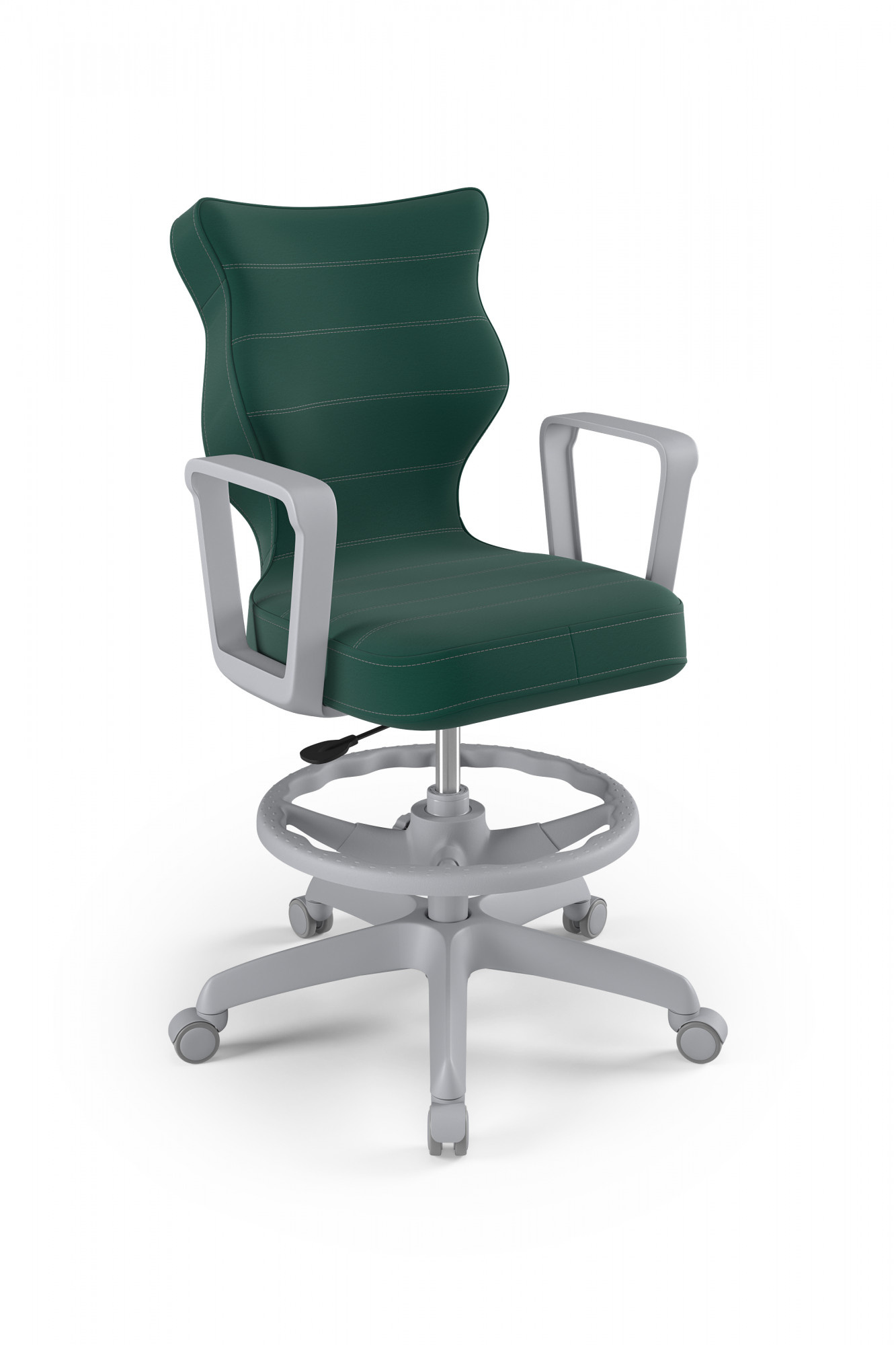 Otočná židle pro teenagery je důležitým kusem nábytku v pokoji každého teenagera. Pro naše zákazníky jsme připravili model Norm, jehož sedadlo je ergonomicky tvarované, díky čemuž uživatel získá maximální pohodlí. Jsme přesvědčeni, že náš výrobek splní vaše očekávání. Čím se židle Norm youth swivel vyznačuje? - Ergonomický sedák z plastu, - Pevné područky, rovněž z plastu, v šedé barvě, - Sedací deska má ocelovou přímou páku, takže židli lze účinně nastavit, - Sloupek v podobě plynového zdvihu z oceli a plastu, - Podnožka s nastavitelnou výškou, - Měkká šedá kolečka
